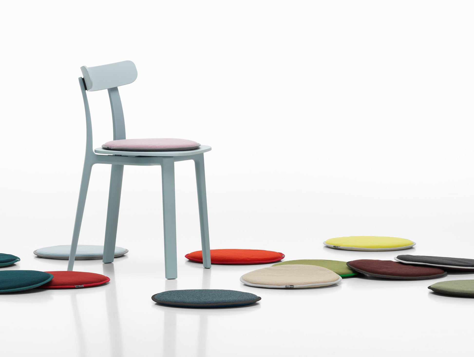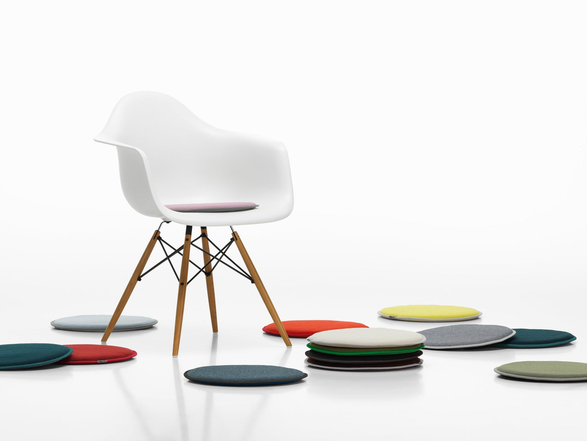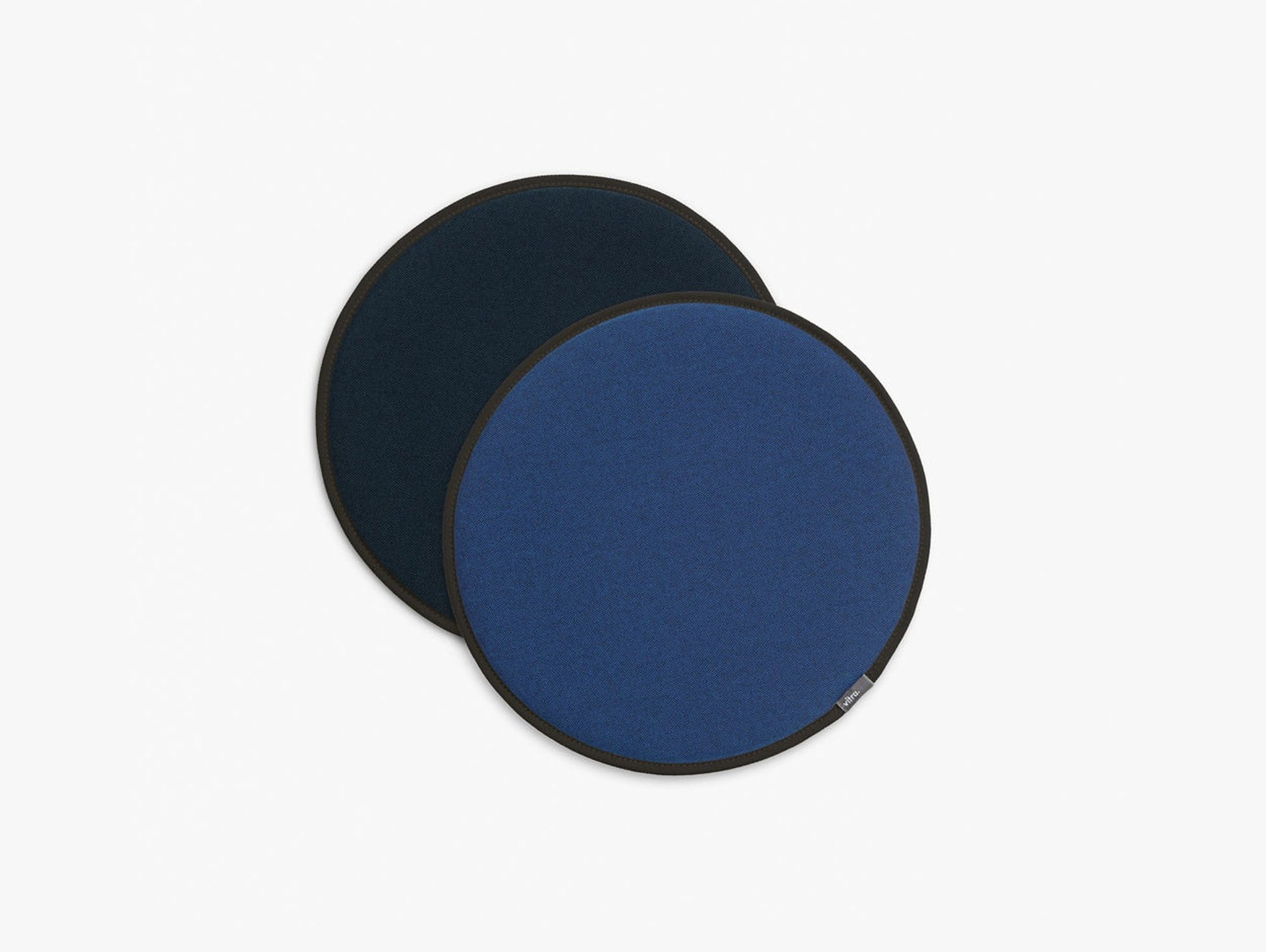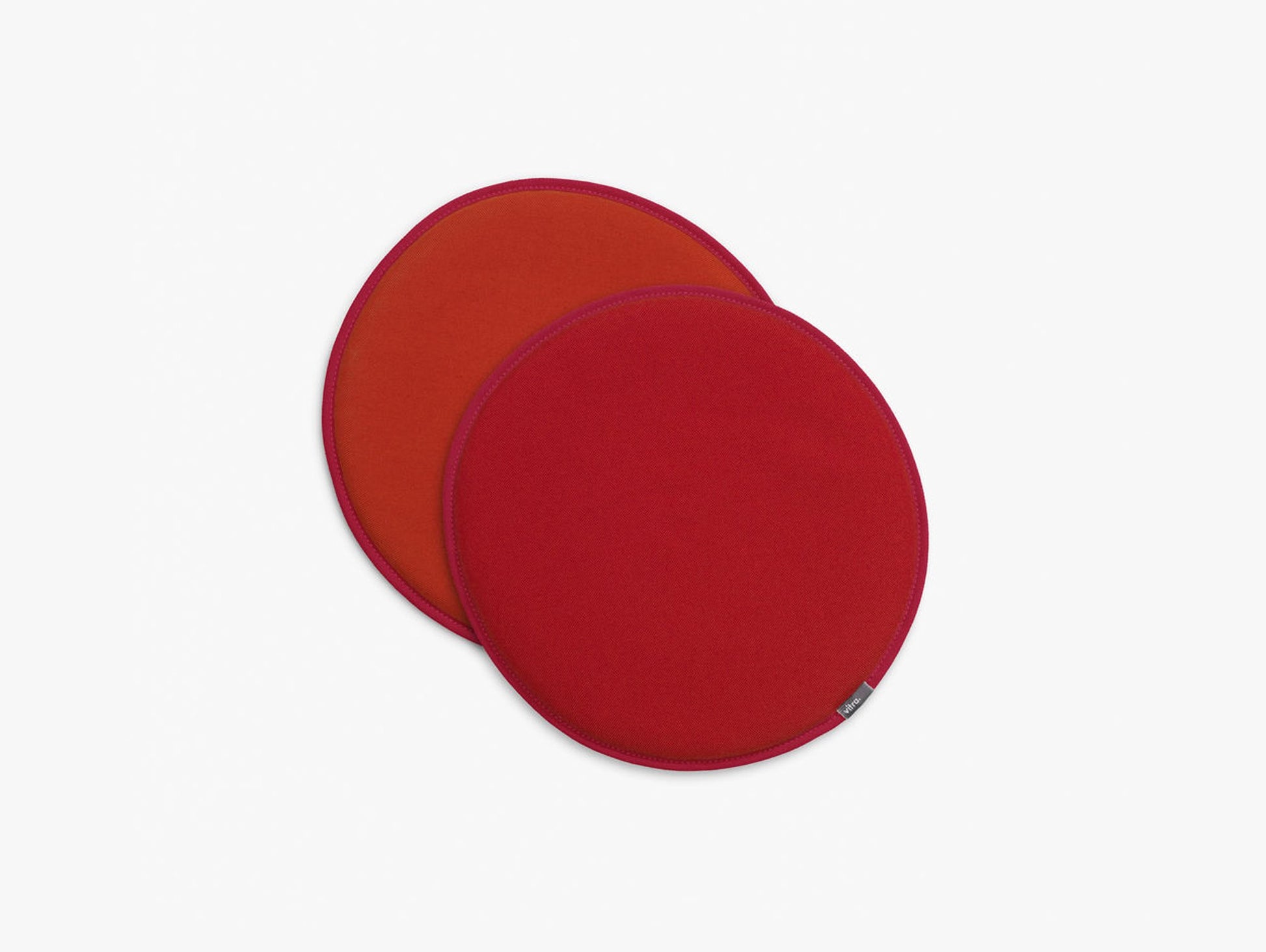 The round upholstered Seat Dot cushions offer a simple way to add comfort to chairs made of plastic, wood or metal. The different coloured faces create subtle or bold accents, which are further enhanced by the edge binding.
