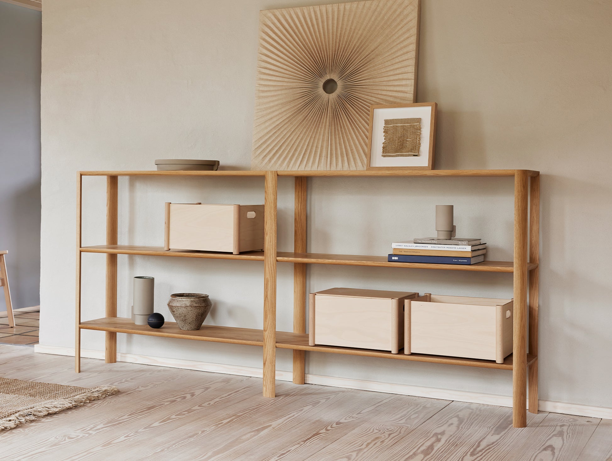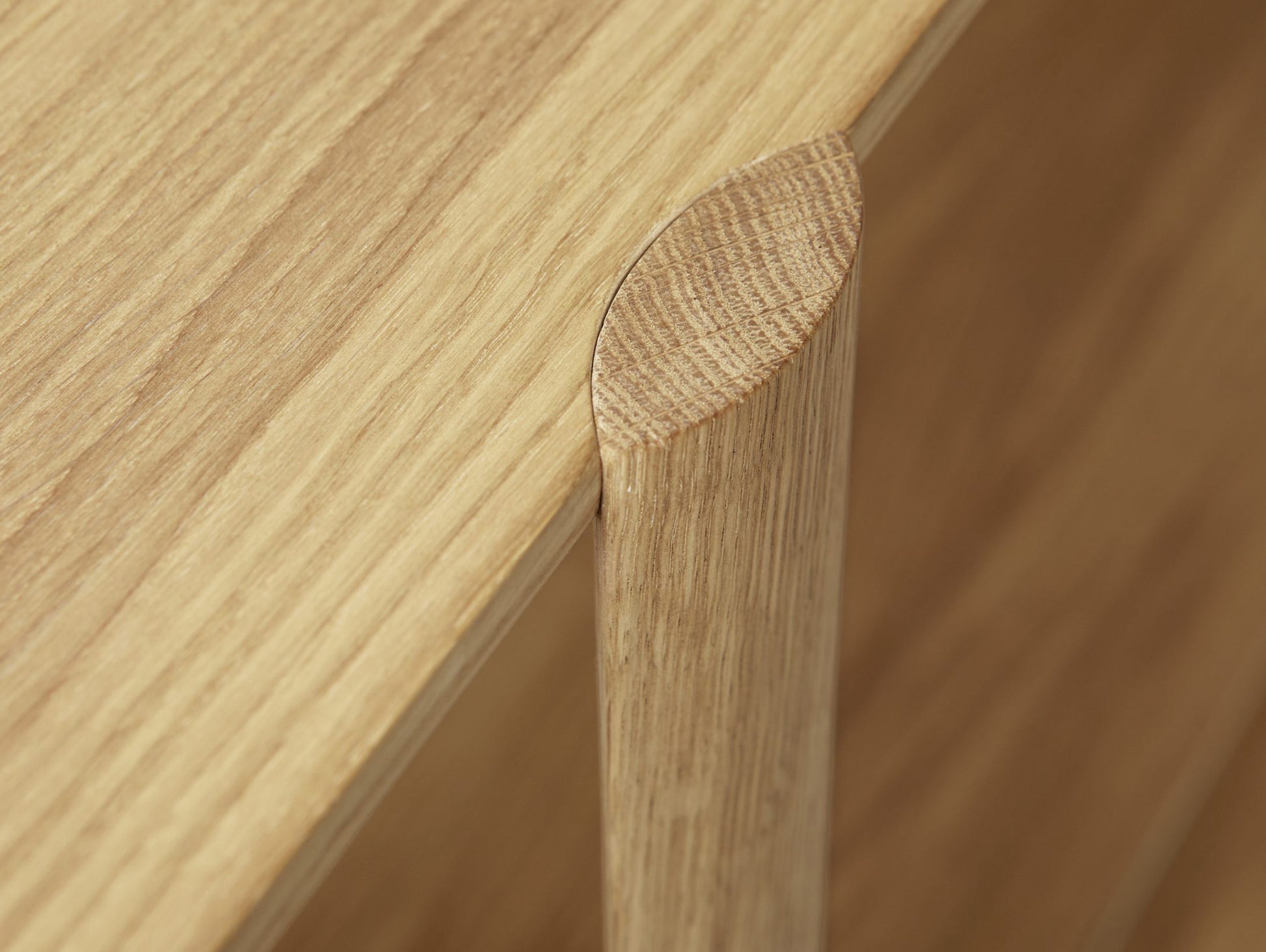 Designed by Jonas Lutz for Form and Refine, the Leaf Shelf is a minimal and multifunctional storage solution that offers the ultimate balance between aesthetics, stability and compactness. With its straightforward design, the beautifully crafted leg pillars are pushed to the outermost point of the shelf to provide an open airy look and to maximise storage space. The Leaf Shelf, so named due to the profile of the leg sections, is constructed without the need for visible screws or additional stabilising elements.