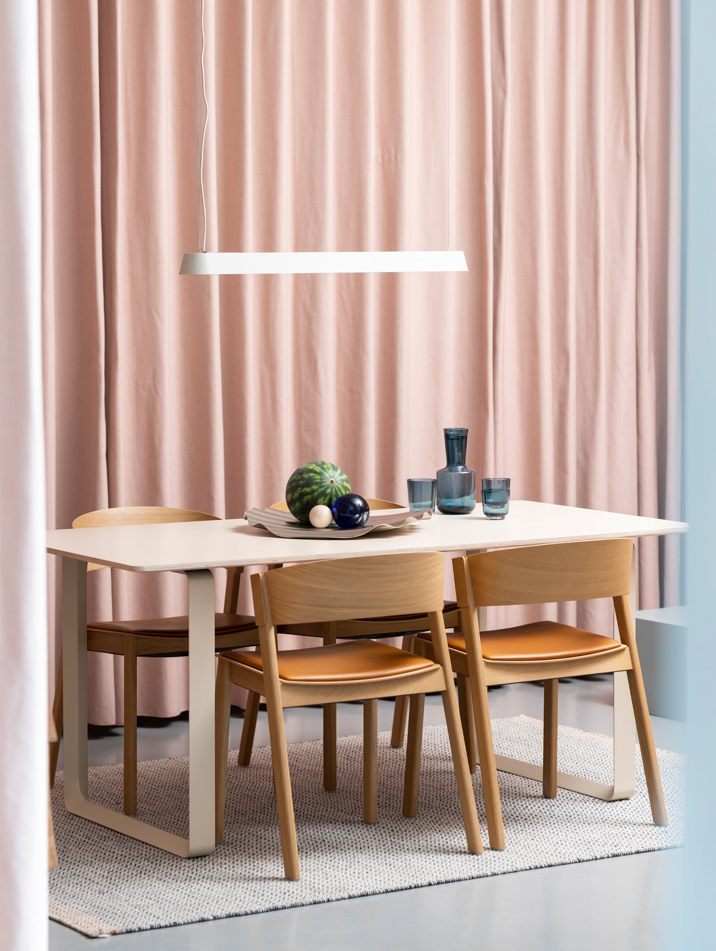 The 70/70 table is minimalistic in design with an airy, light expression - creating a beautiful profile. A true multi-purpose table for dining, working or playing on; the ingenious leg detail maximises space for human and chair legs underneath.