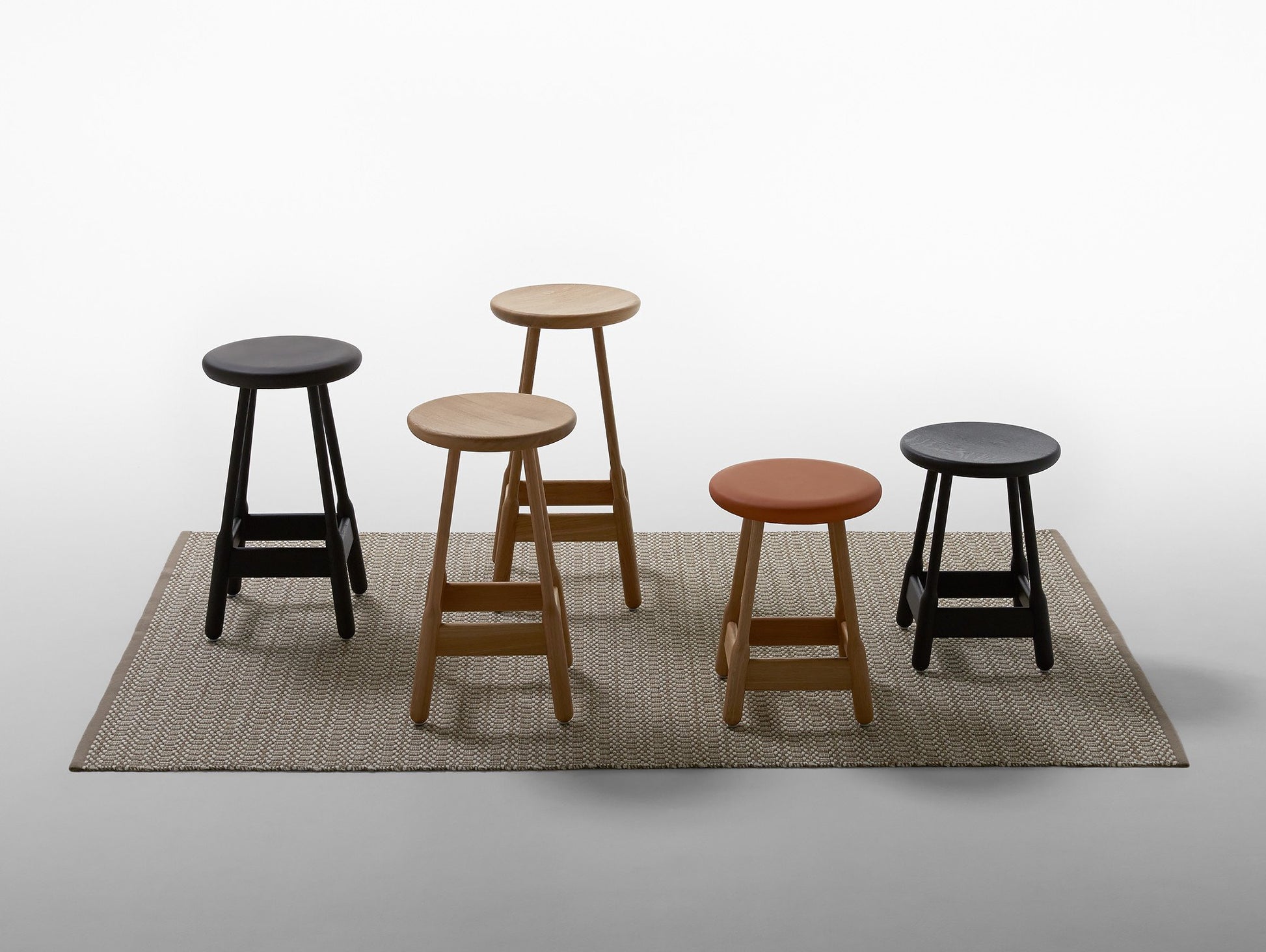 Every stool is also available with an upholstered seat. Pricing is based on the chosen fabric.