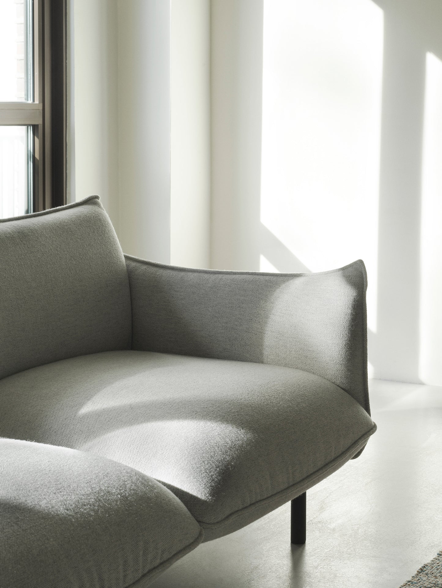 Ark is built using a spring system and a combination of high-density foam, low-density foam and wadding, all to provide maximum comfort. The frame rests on slender legs made from powder-coated steel, which elegantly lifts the sofa from the ground, making the design appear airy and light.