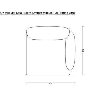 Right Armrest Module 120 - Width: 90 cm, Depth: 89 cm, Height: 77 cm, Seat Height: 43 cm
