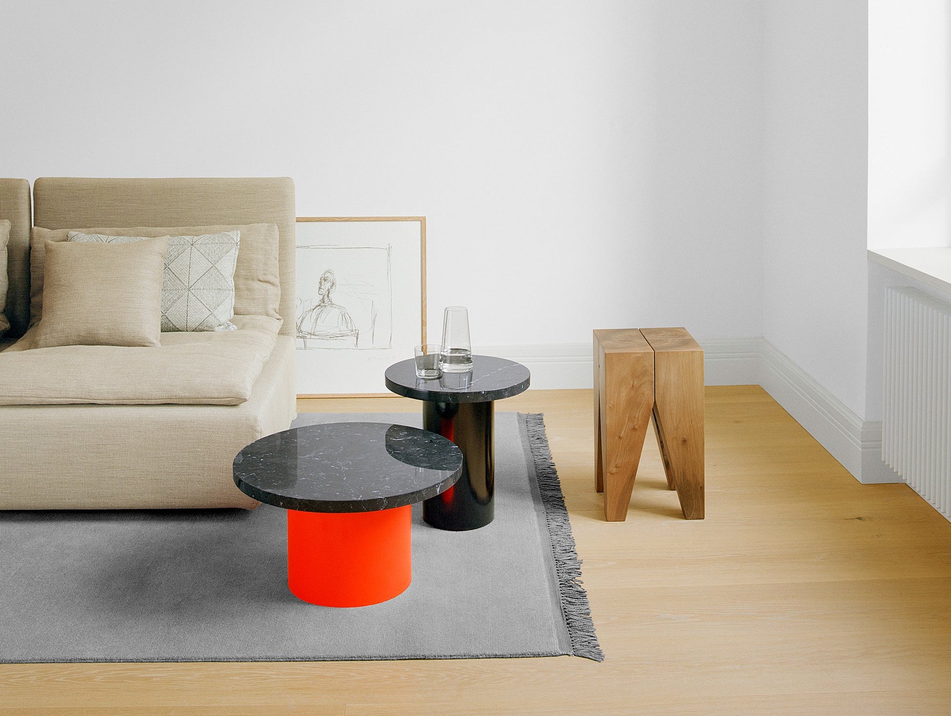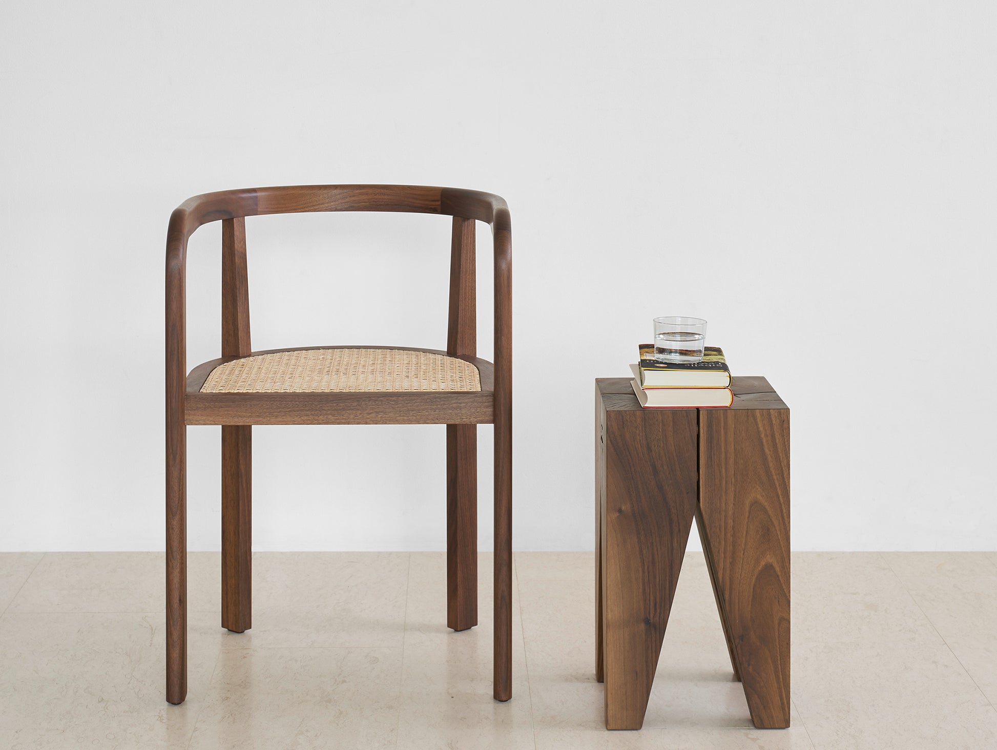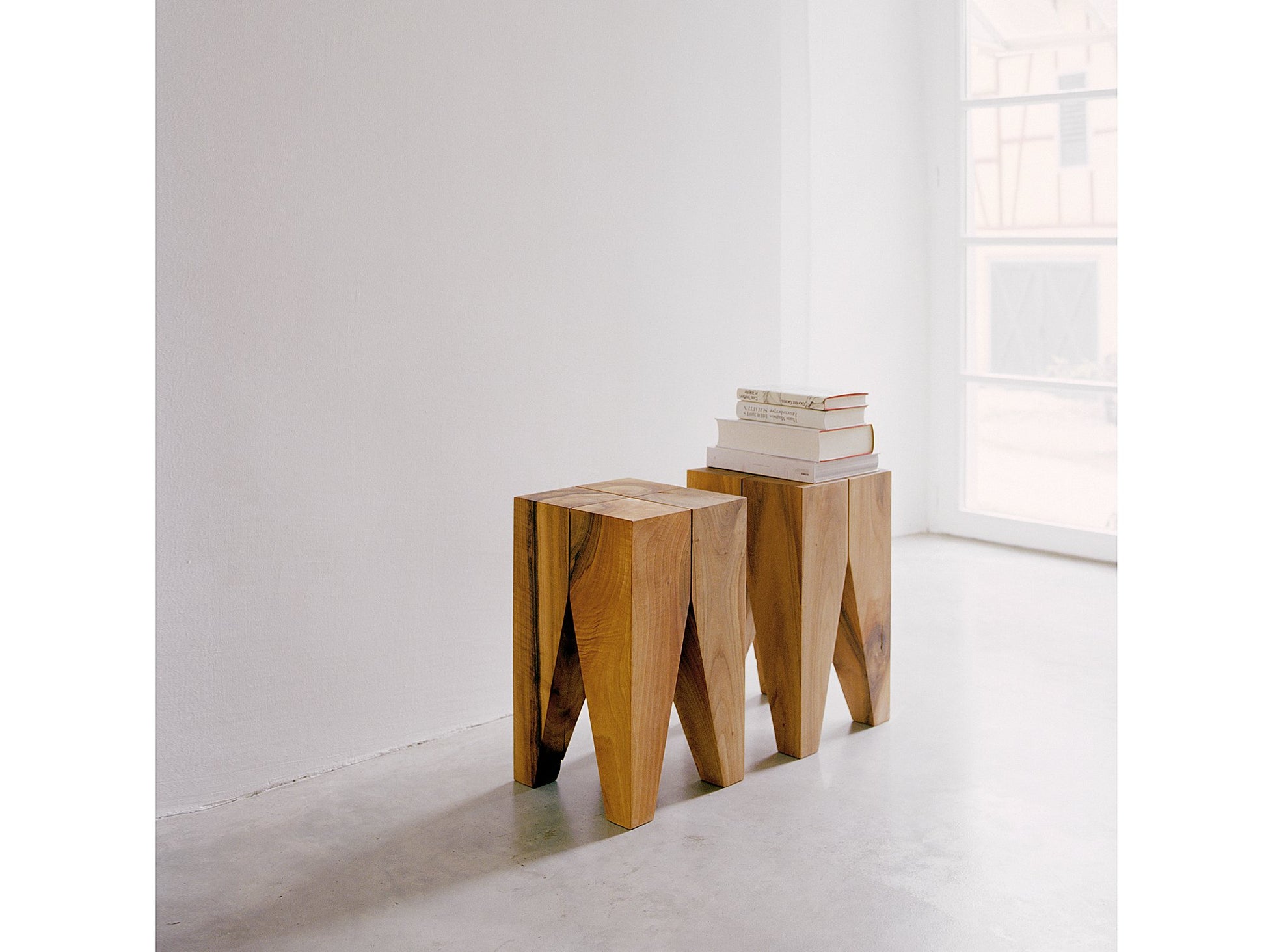 Considered a design classic, the Backenzahn Side Table has become an identifying icon for e15 and part of several permanent exhibitions in Museums. With its four identical legs made of solid oak or walnut, the stool gives a strong impression. The legs taper downward with two deliberate incisions. The gaps between the legs suggest that all four parts are still clearly recognisable.