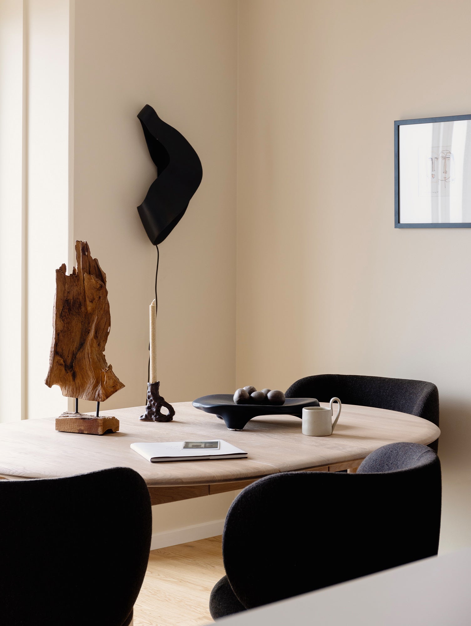 Made entirely from solid oak with a finish in Black Oiled Oak, White Oiled Oak or White Oiled Beech, the broad and sculpted legs on Ferm Living's Bevel Extendable Table add a modern edge to the otherwise classic design. With two extension leaves to expand the design to accommodate additional guests, both tabletop and legs are minimally detailed with gently rounded edges for a soft expression. Lasting materials and a timeless silhouette make the Bevel Extendable Table an indispensable addition to any modern home.