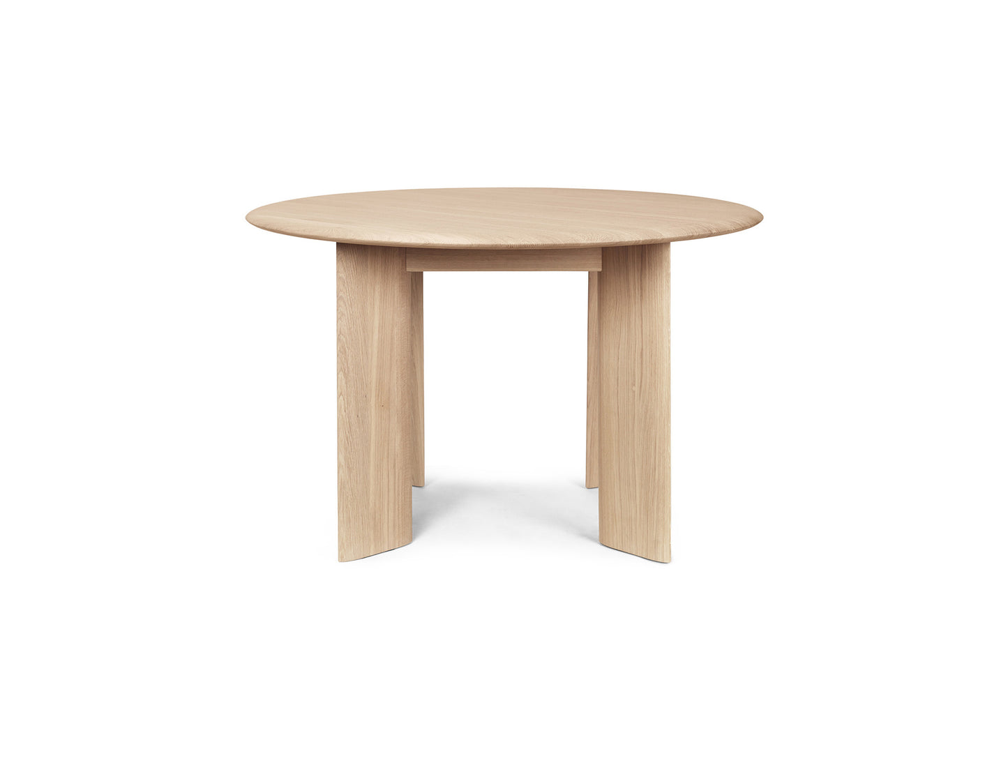 Made entirely from FSC-certified solid oak or beech wood and available in white or black oiled finishes, the broad and sculpted legs of Ferm Living's Bevel Round Table lend a modern touch to its otherwise classic design. Both the tabletop and legs are minimally detailed with gently rounded edges for a soft expression. The table has a 117cm-diameter top, which can comfortably seat four people, and more at a squeeze.