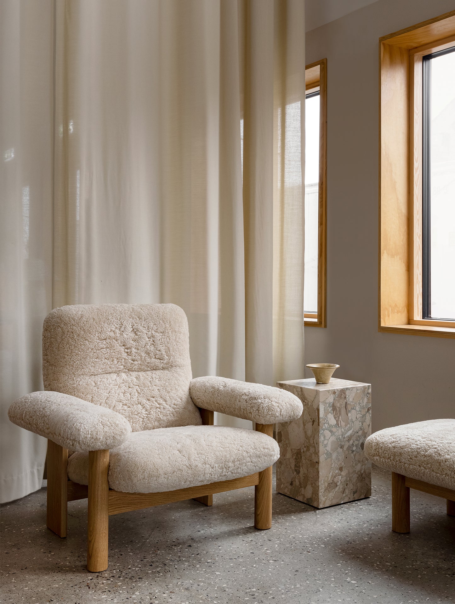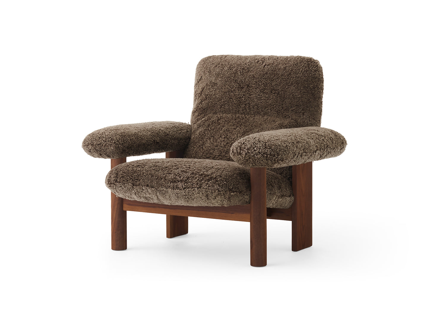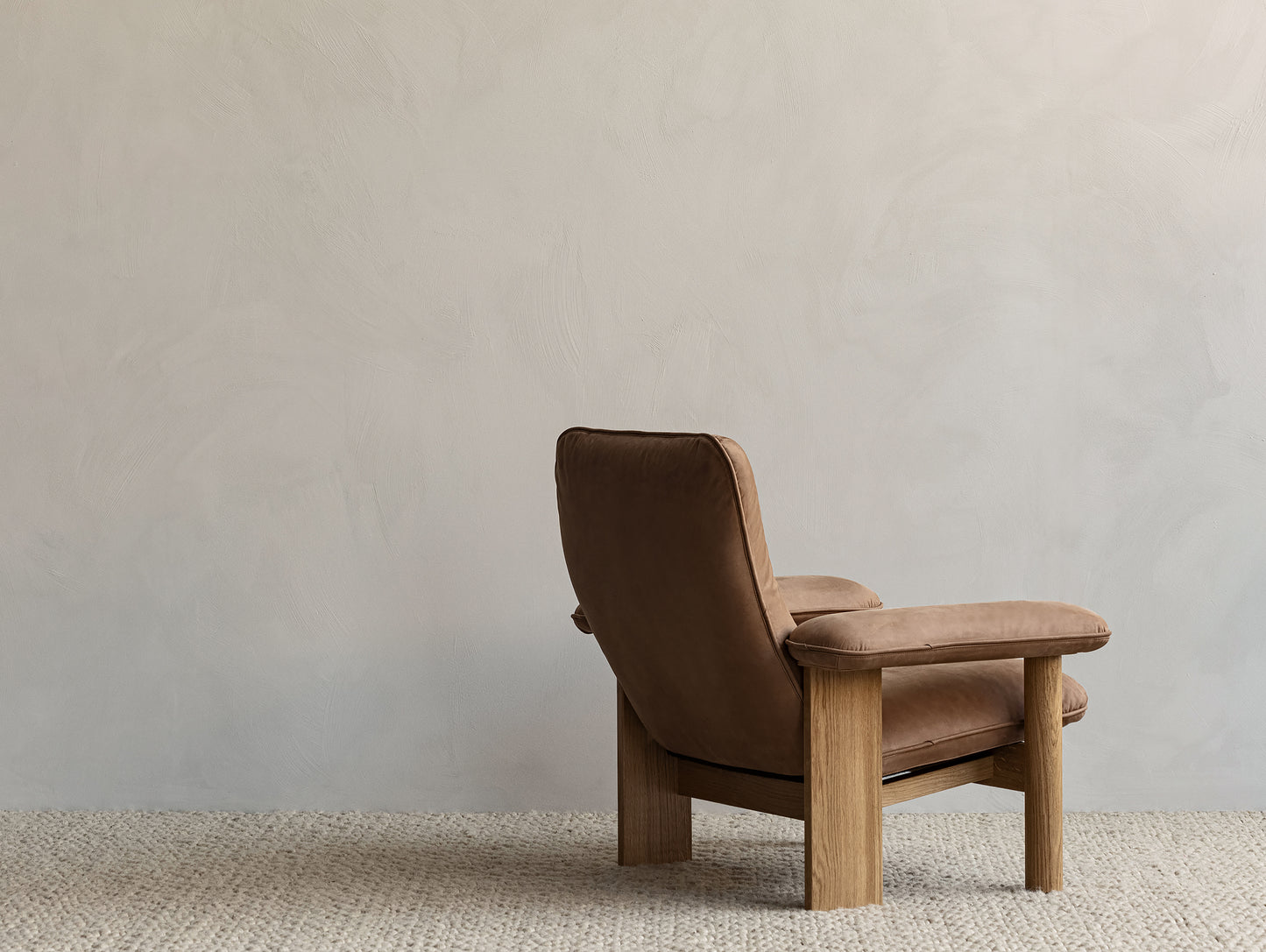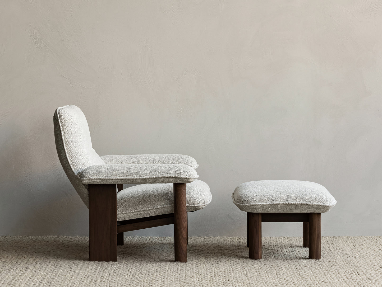 Designed for Audo Copenhagen by Anderssen & Voll, the Brasilia Lounge Chair is inspired by Scandinavian mid-century design aesthetics and Brazilian Modernism. Chunky wooden legs lend a feeling of strength and stability to the design, while the upholstered back, seat and armrests add a sense of comfort. Match with the corresponding Brasilia Ottoman, which doubles as a seat for unexpected guests or a resting place for a newspaper or tray.