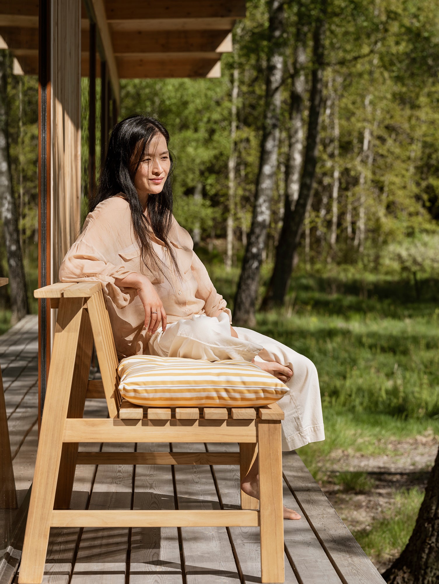 Fritz Hansen's Cadence Bench is a simple, modern and playful design crafted from solid FSC-certified teak. From the top of the backrest runs two horizontal planks, ideal for placing a glass of wine, small flowerpots or a lantern at night. As the bench has no arms it's also possible to use the bench as somewhere to lay in the sun and soak up some rays.