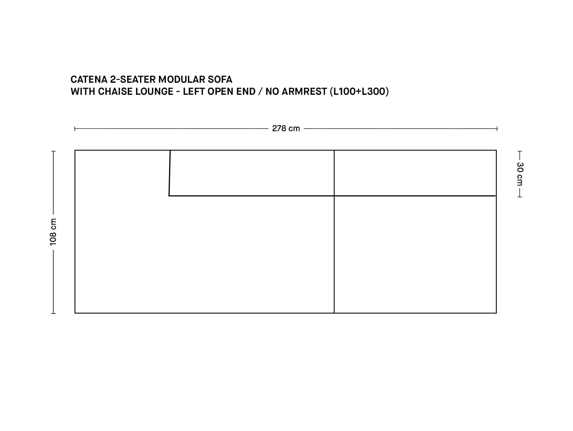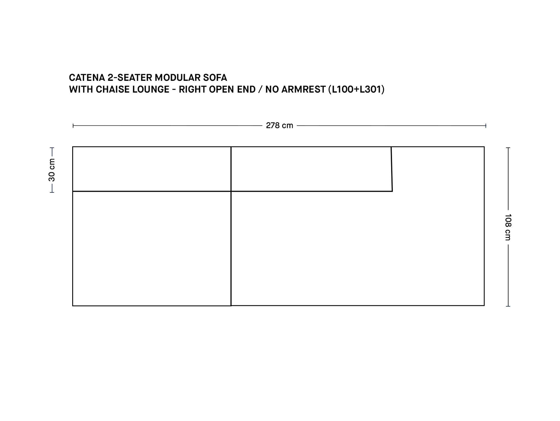 2-Seater with Chaise Lounge with Open End / No Armrest (available with right side open end or left side open end) - Width: 278 cm, Depth: 108 cm, Seat Depth: 78 cm, Height: 76 cm, Seat Height: 42 cm, Backrest Height: 34 cm