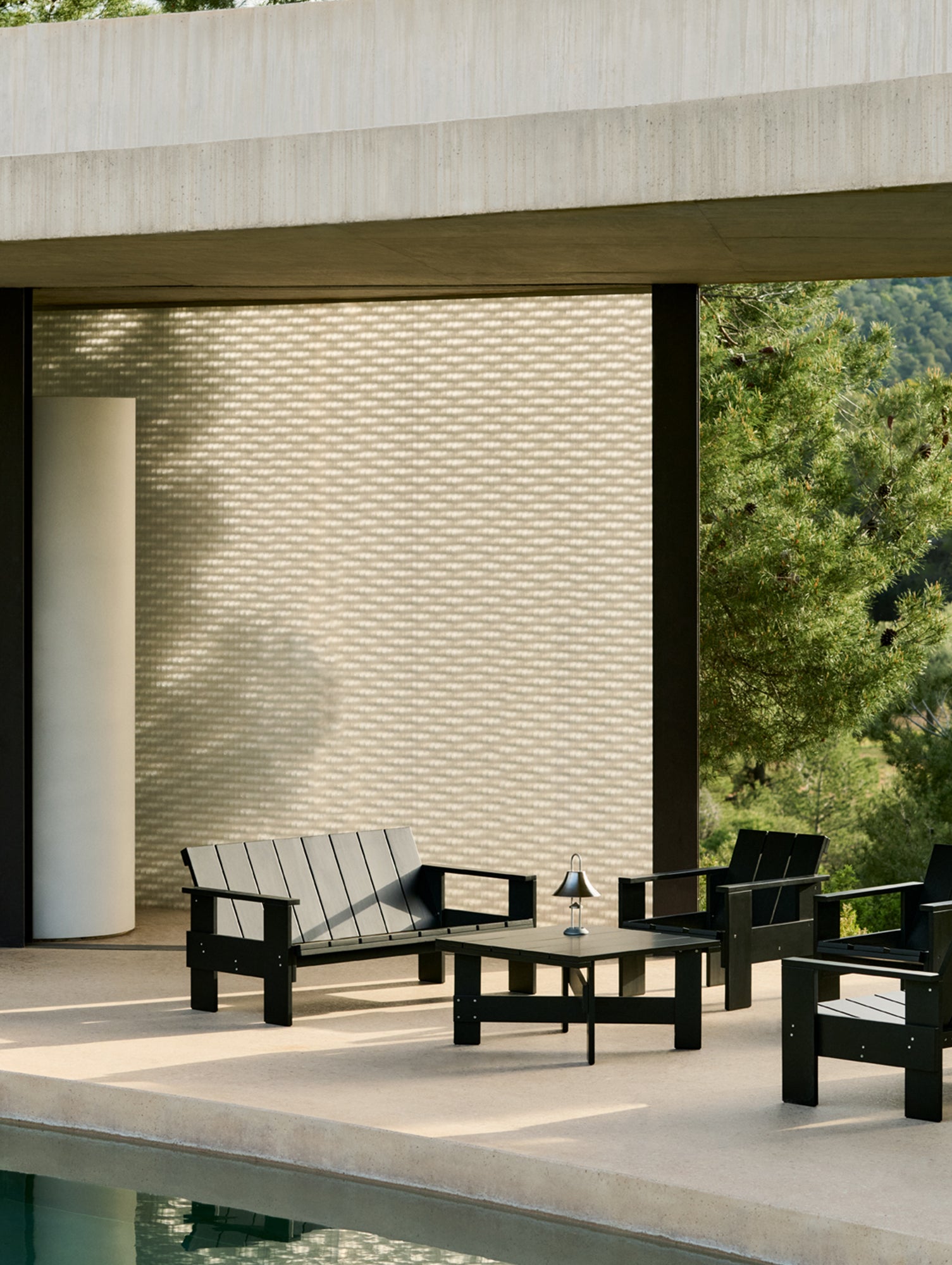 Featuring low proportions, a gently sloping back and a seat with supportive armrests, the chair's simplicity and spatial design mirror the designer's architectural style providing functionality and comfort. Crafted with FSC-certified solid pinewood with 3 layers of lacquer finish, the Crate Lounge Chair is suitable for both outdoor and indoor use and the optional seat cushions provide extra comfort.