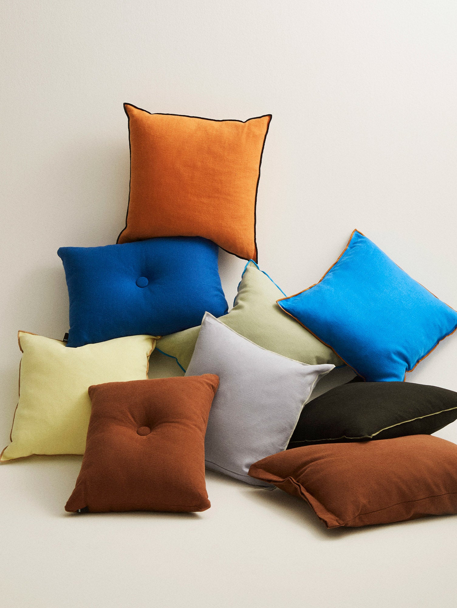 Characterised by the coloured covered buttons on the cushion, HAY’s Dot Cushion has become a design classic in many homes. This version is crafted from Kvadrat's Steelcut Trio, Maharam's Mode, and HAY's Planar, offering a rich tonal range and texture as well as superior durability.