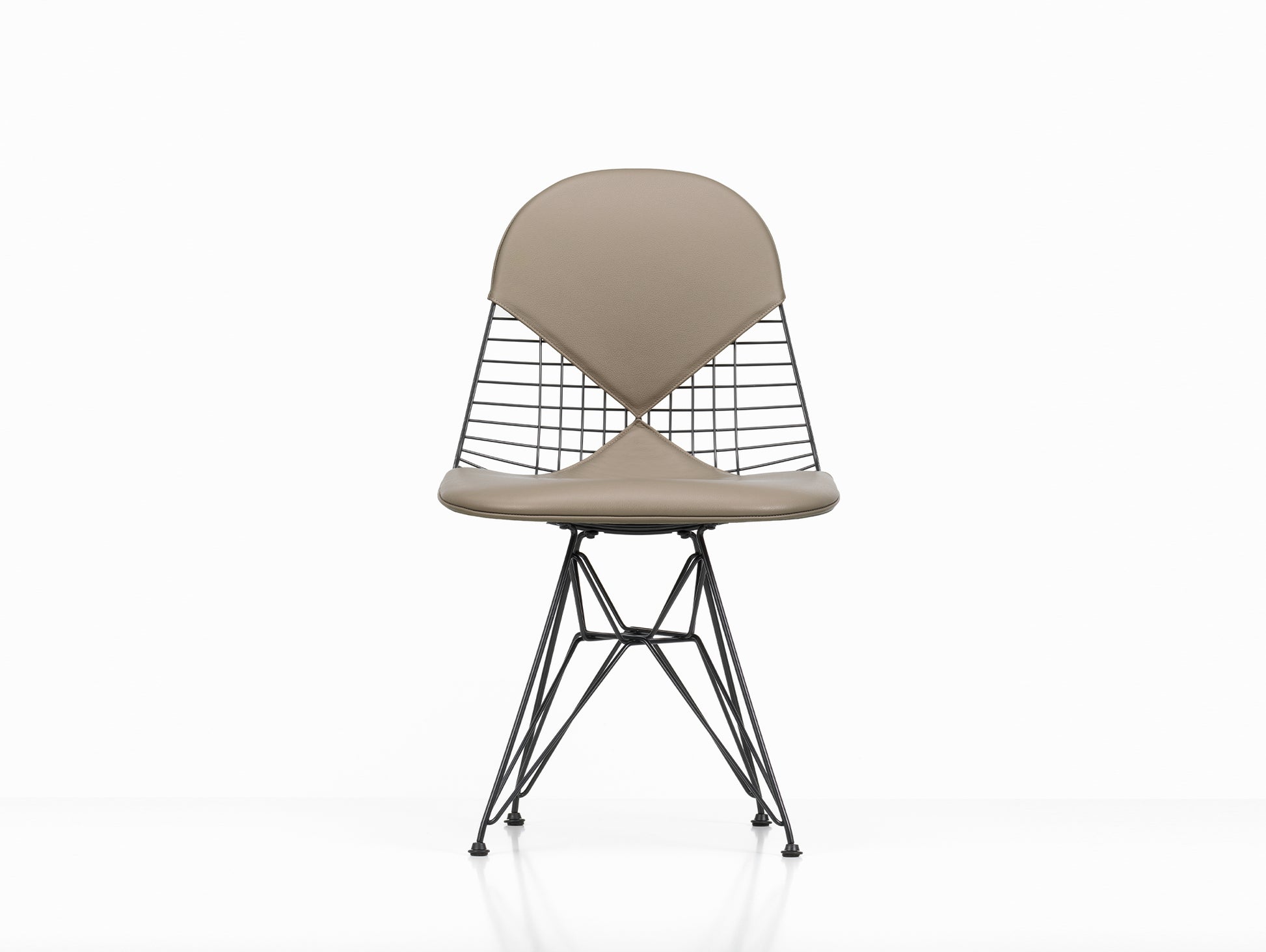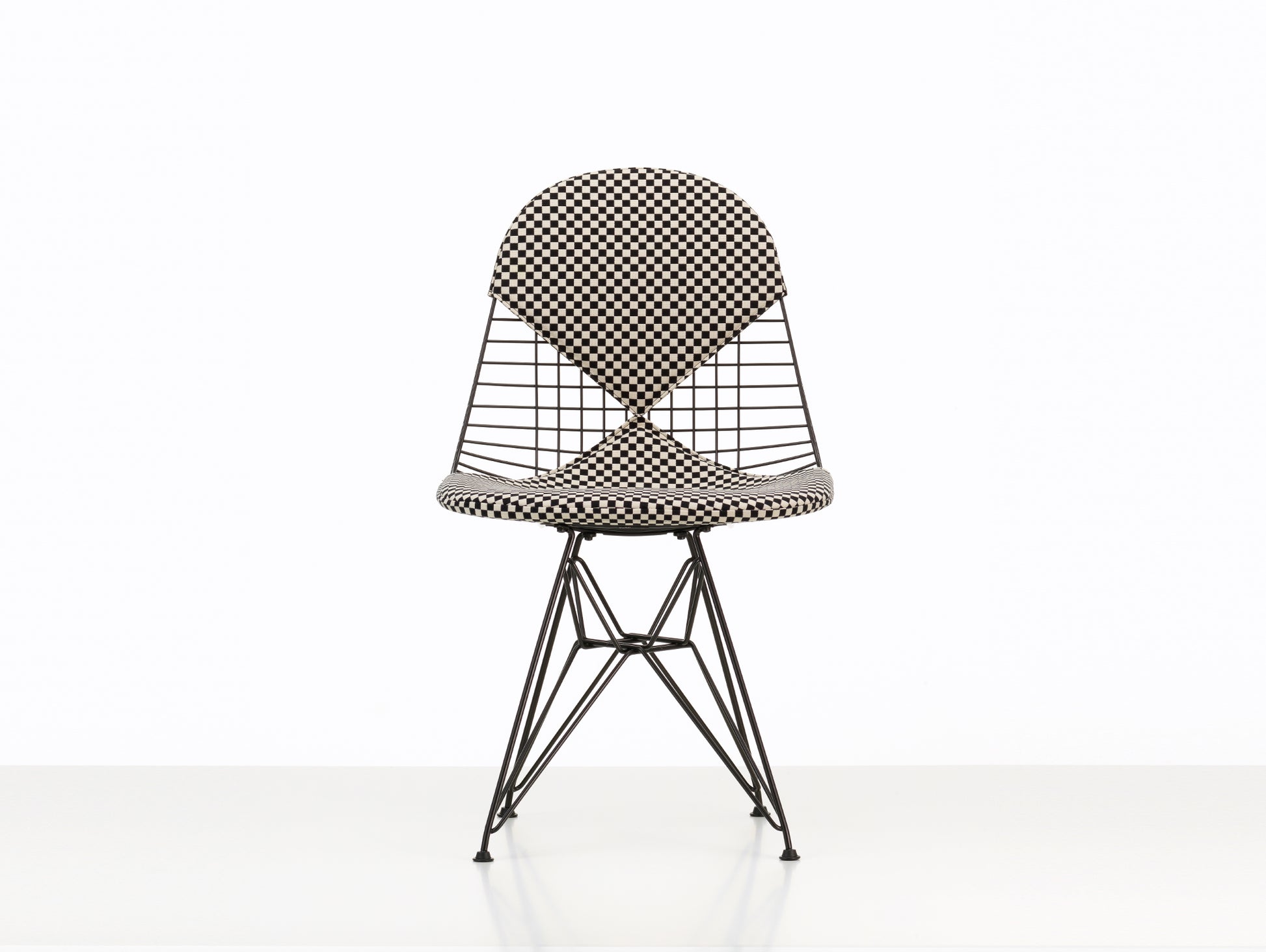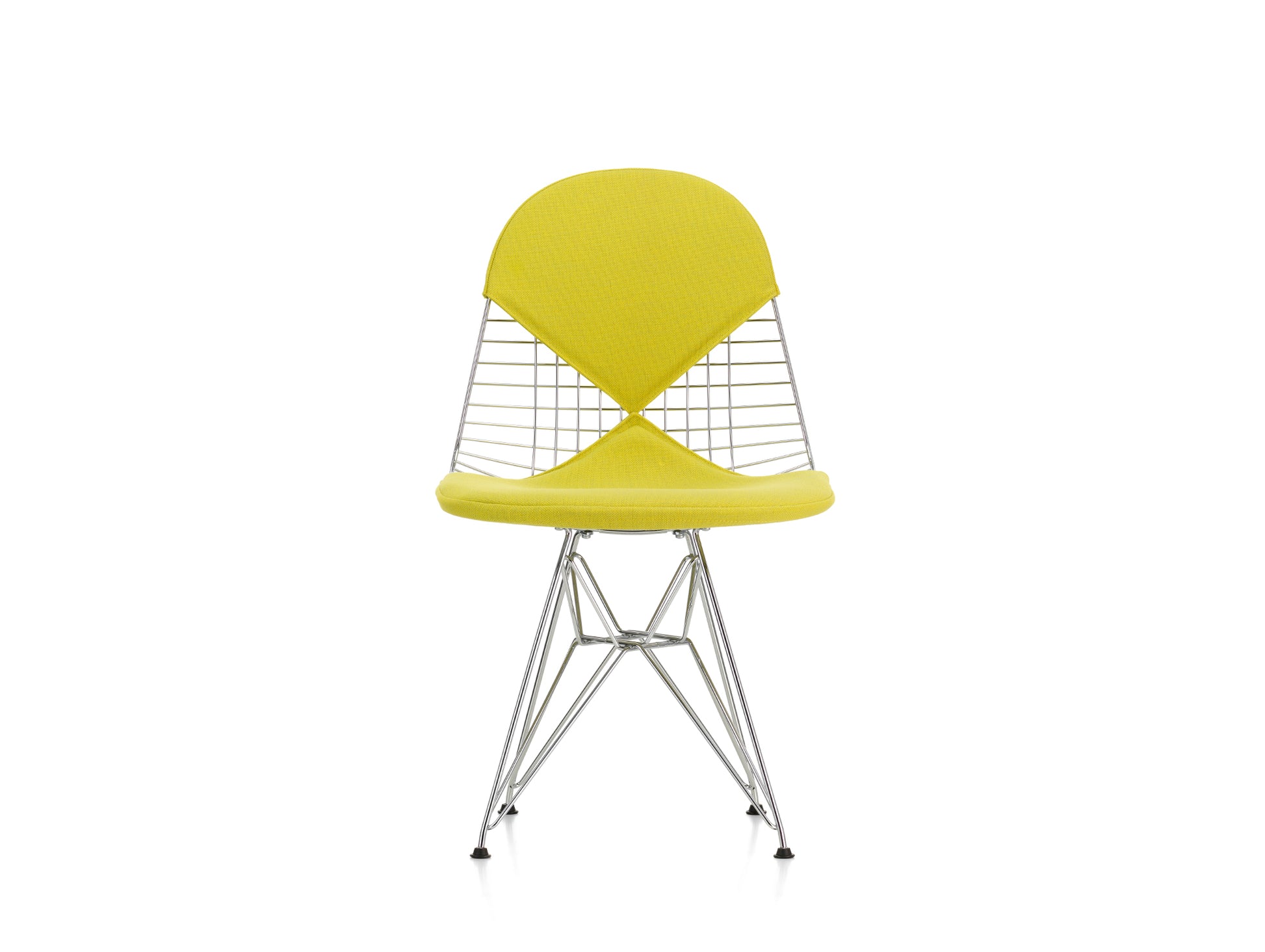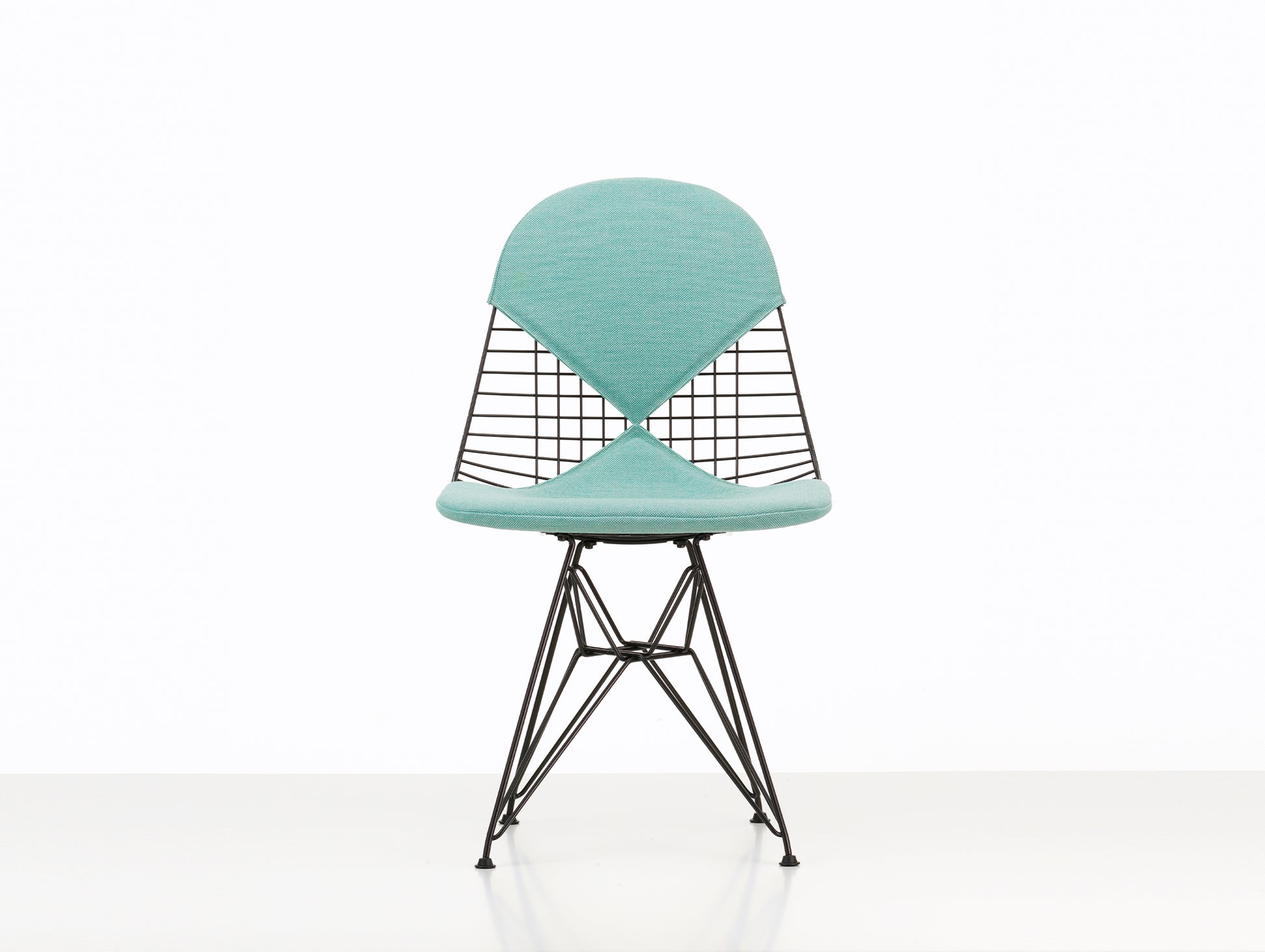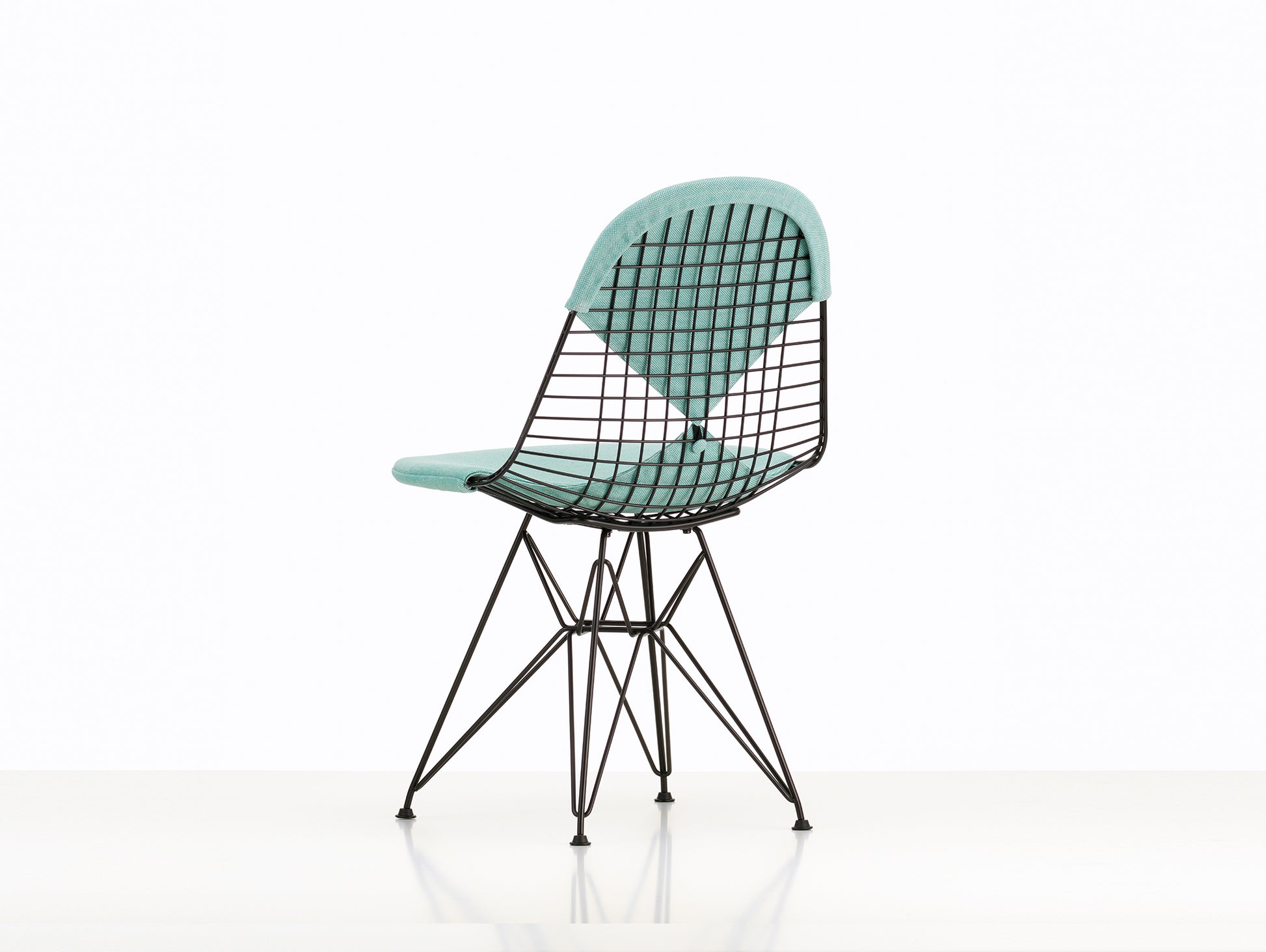 Designed in 1951, the Vitra Eames Wire Chair (DKR: Dining Knot-Wire Chair Rod-base) is a variation on the theme of the organically shaped one-piece seat shell, pairing transparent lightness with technological sophistication.