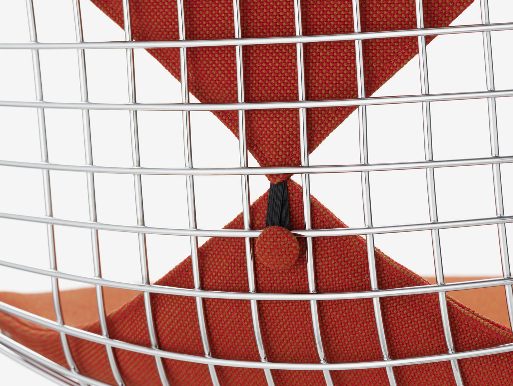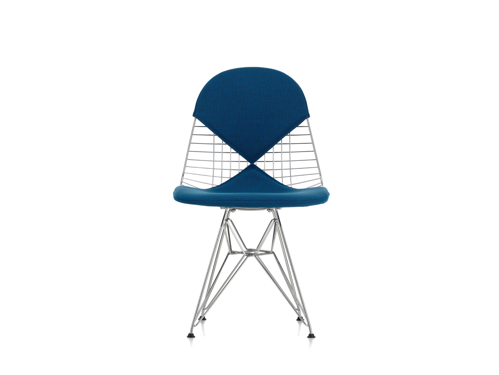 The wire shell can be joined with a variety of different bases and is offered without upholstery, with a removable seat cushion, or with a removable two piece seat and back cushion for the ultimate in comfort. DKR models with a powder-coated finish (not chrome) are suited for both indoor and outdoor use.