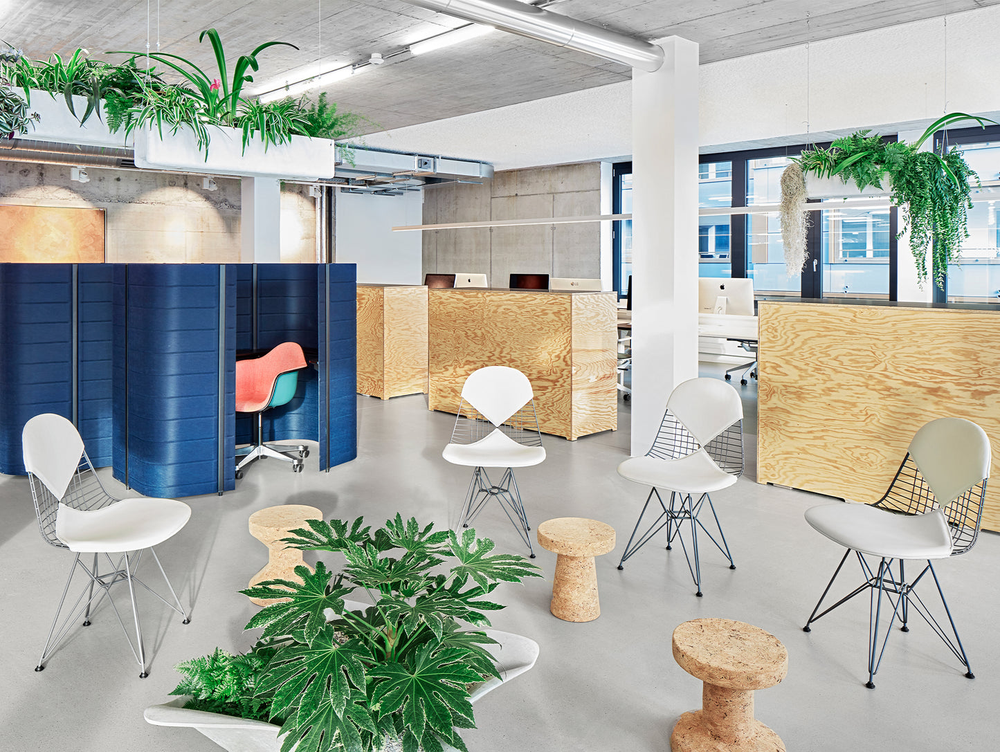 Their intention was to design a light and durable chair using a minimal amount of materials. Inspired by the DSR chair, the first industrially produced plastic chair, they came up with an intelligent design solution which uses a wireframe grid and a classic Eames Eiffel base to create a functional and honest chair with a unique expression.