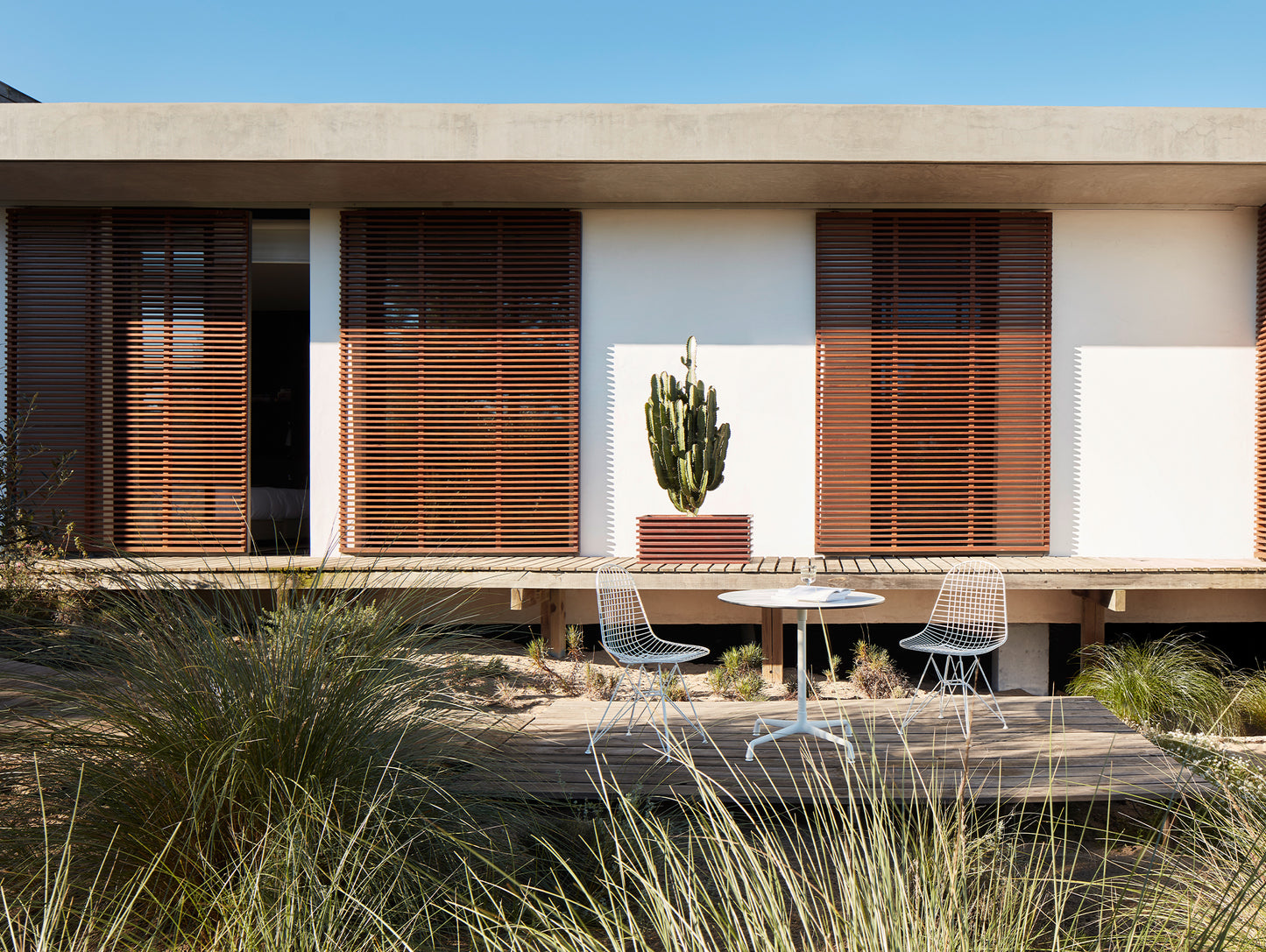 Seat shell: bent and welded steel wire, chrome-plated or powder-coated in white or dark colour. The powder-coated version is suitable for outdoor use.