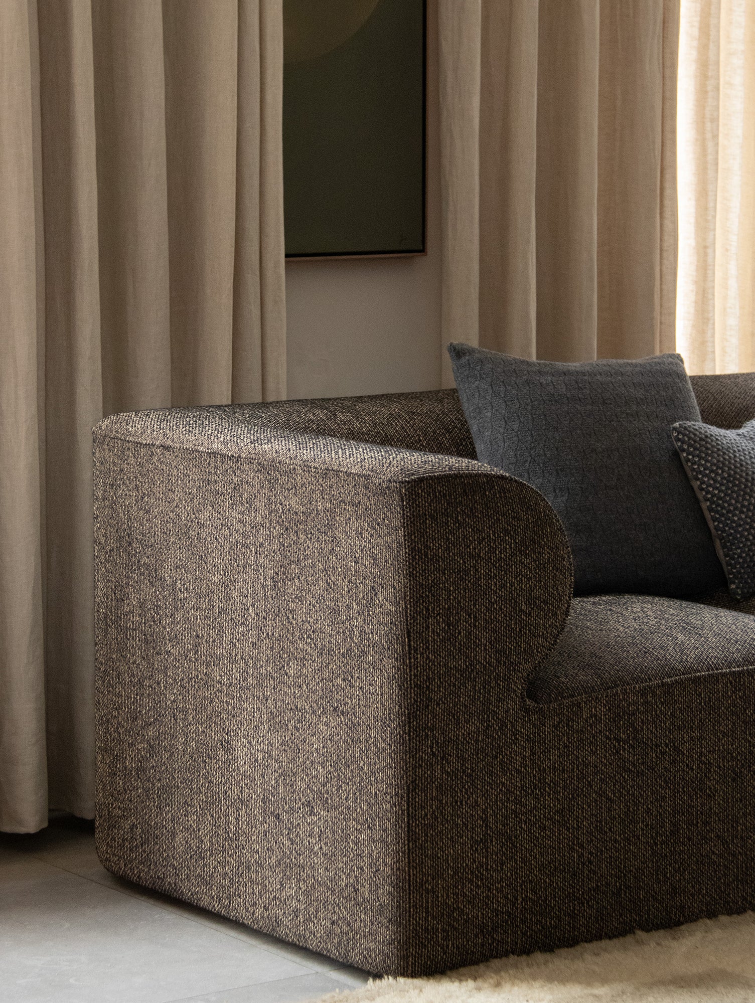 Designed by Norm Architects for Audo Copenhagen, the Eave Modular Sofa is a stylish functional sofa with the flexibility of a modular system. Its modular construction allows you to create any sofa shape or size to fit the exact requirements of your space. Taking its name from 'eaves' - the lower edges of the roof that overhang a wall, the sofa's distinctively bold design highlights its dynamic yet elegant form. A solid pine wood, plywood and MDF frame encase a sprung platform layered with a double HR foam layer with no-sag springs. A robust frame enhances the sofa's durability while a high-density dual-layered foam provides a firmer seat and more bounce back.