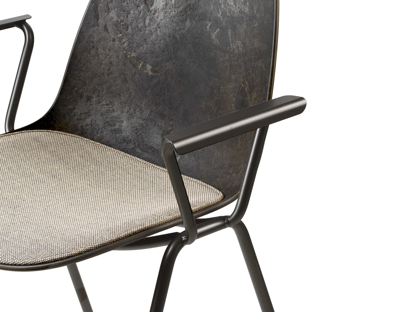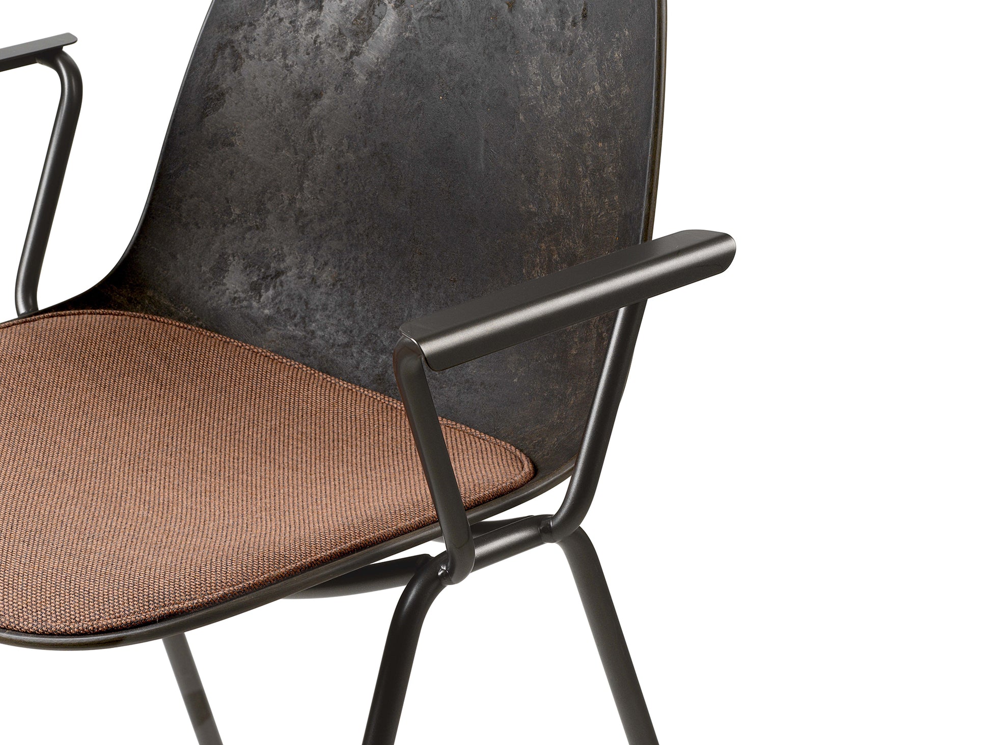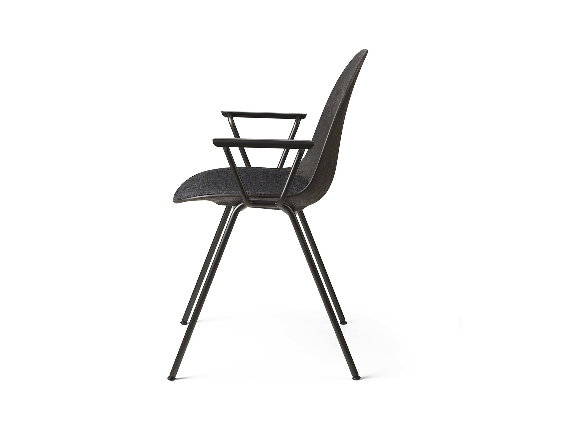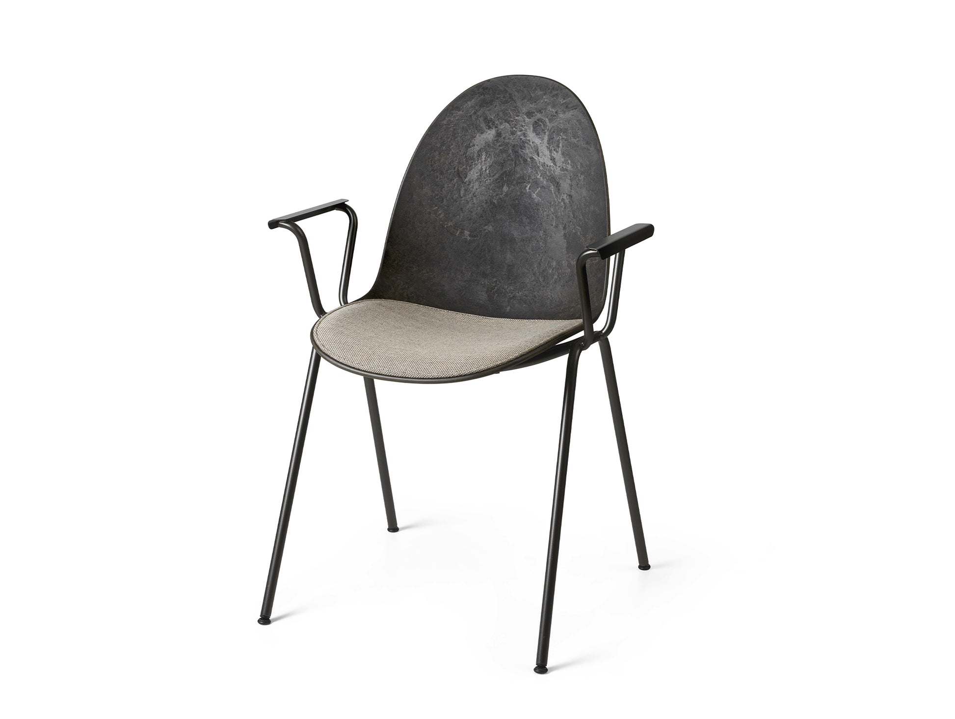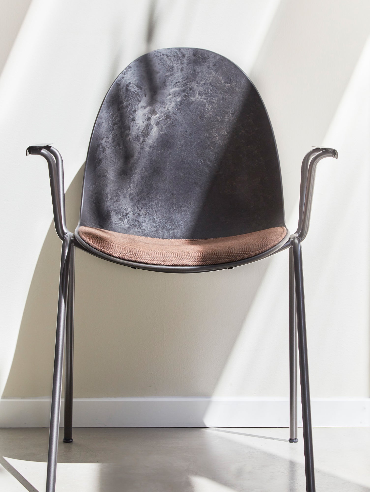 Designed by Space Copenhagen for Mater, the Eternity Armchair shell is made with discarded coffee beans from Danish coffee producer BKI Kaffe, and industrial plastic waste from German plumbing fixtures manufacturer Grohe. With new groundbreaking technology, it is designed for disassembly, meaning that the design allows each component in its purest form to be upcycled into new production circles.