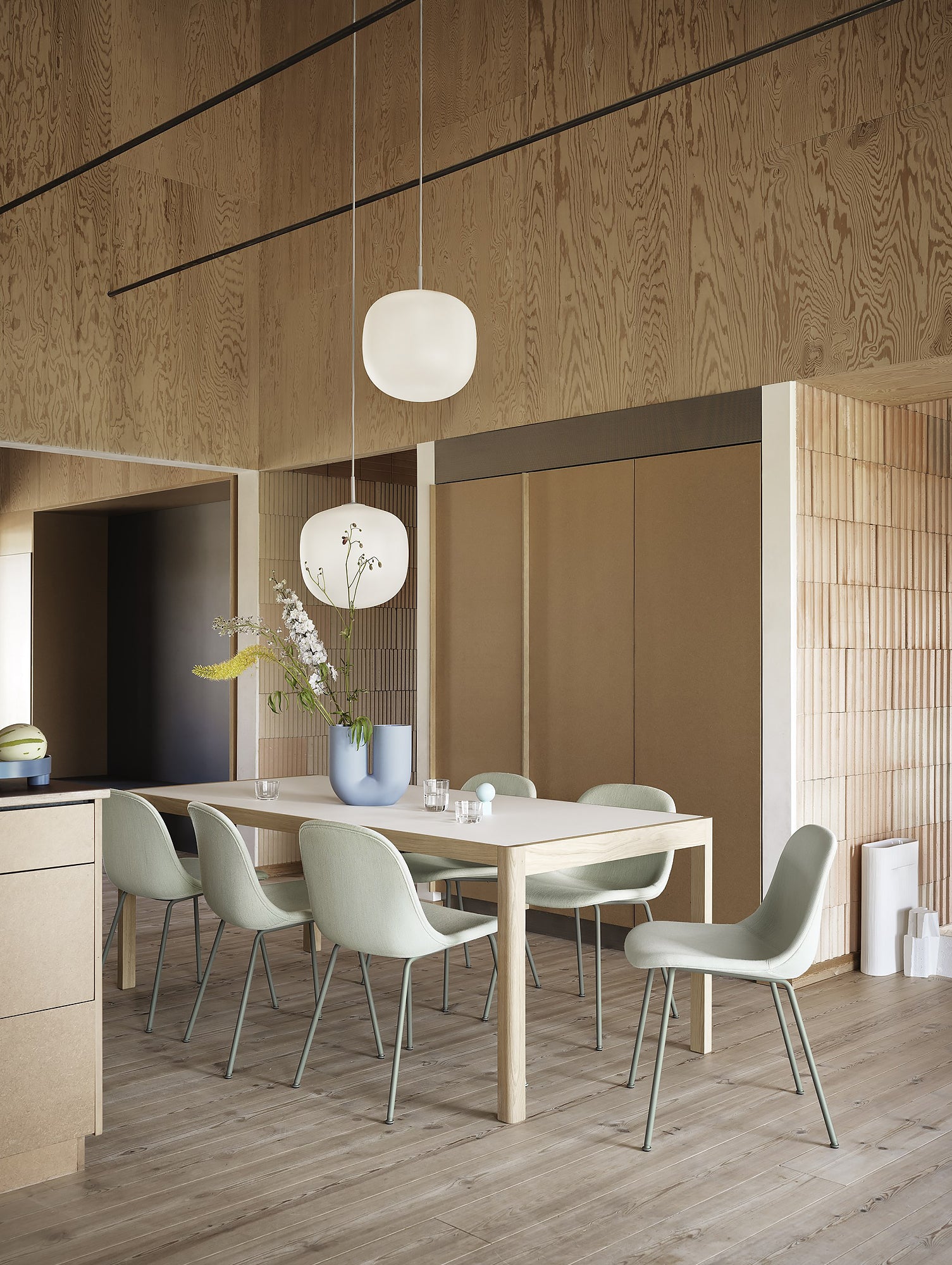 The Fiber Side Chair is made from an innovative wood fiber composite with up to 25% pine wood fibers for a tactile expression and matte touch, joined by the Scandinavian touch of a tube base. The fibers make for a unique texture when viewed up-close yet become invisible to the eye when viewed from afar, paired with an embracing yet minimal shape. At the end of its life, this product can be disassembled, supporting circularity. All non-upholstered versions of this product are marked with recycling 5, meaning that is 100% recyclable to be used in future production and thus lowering material waste.