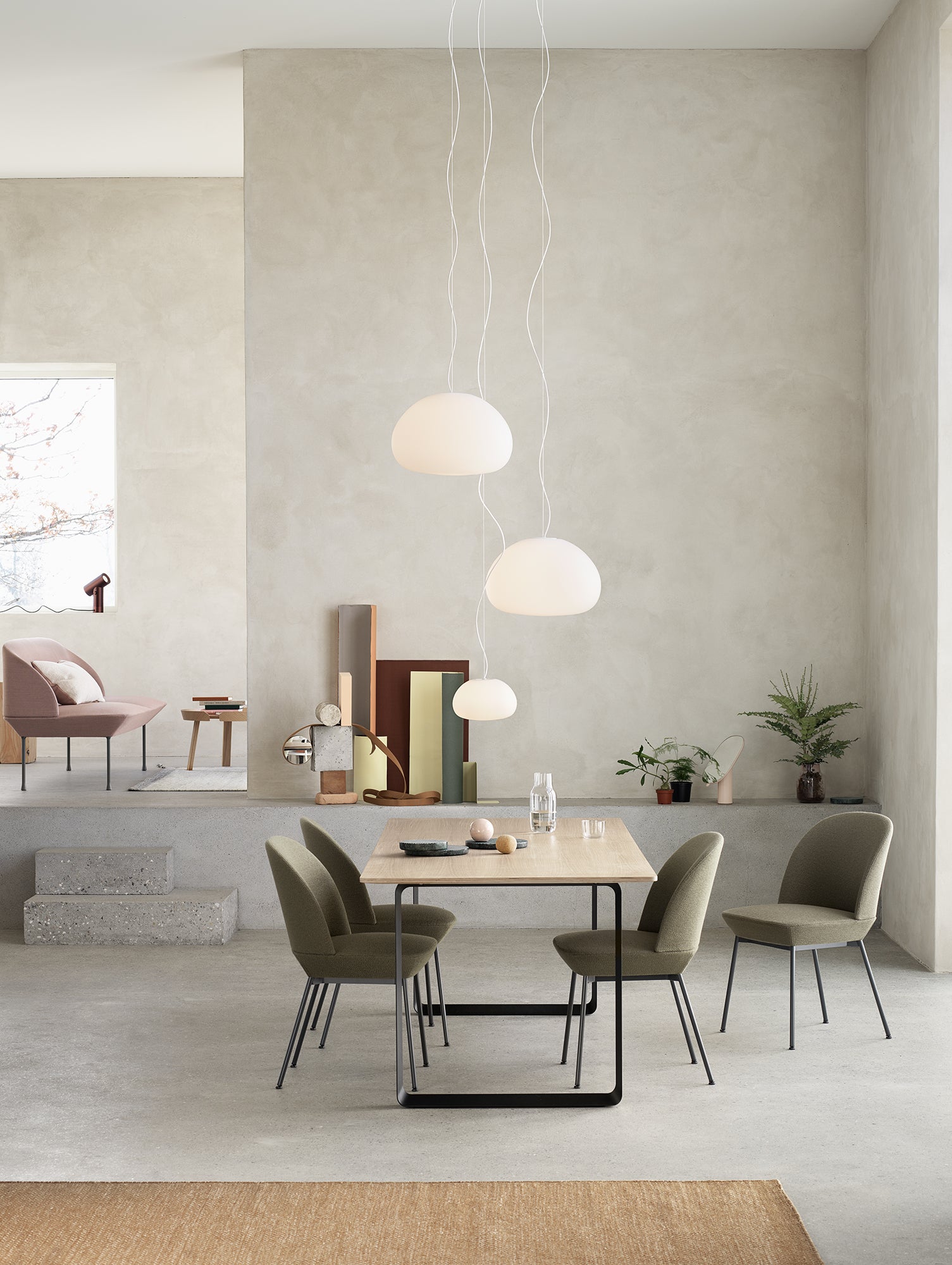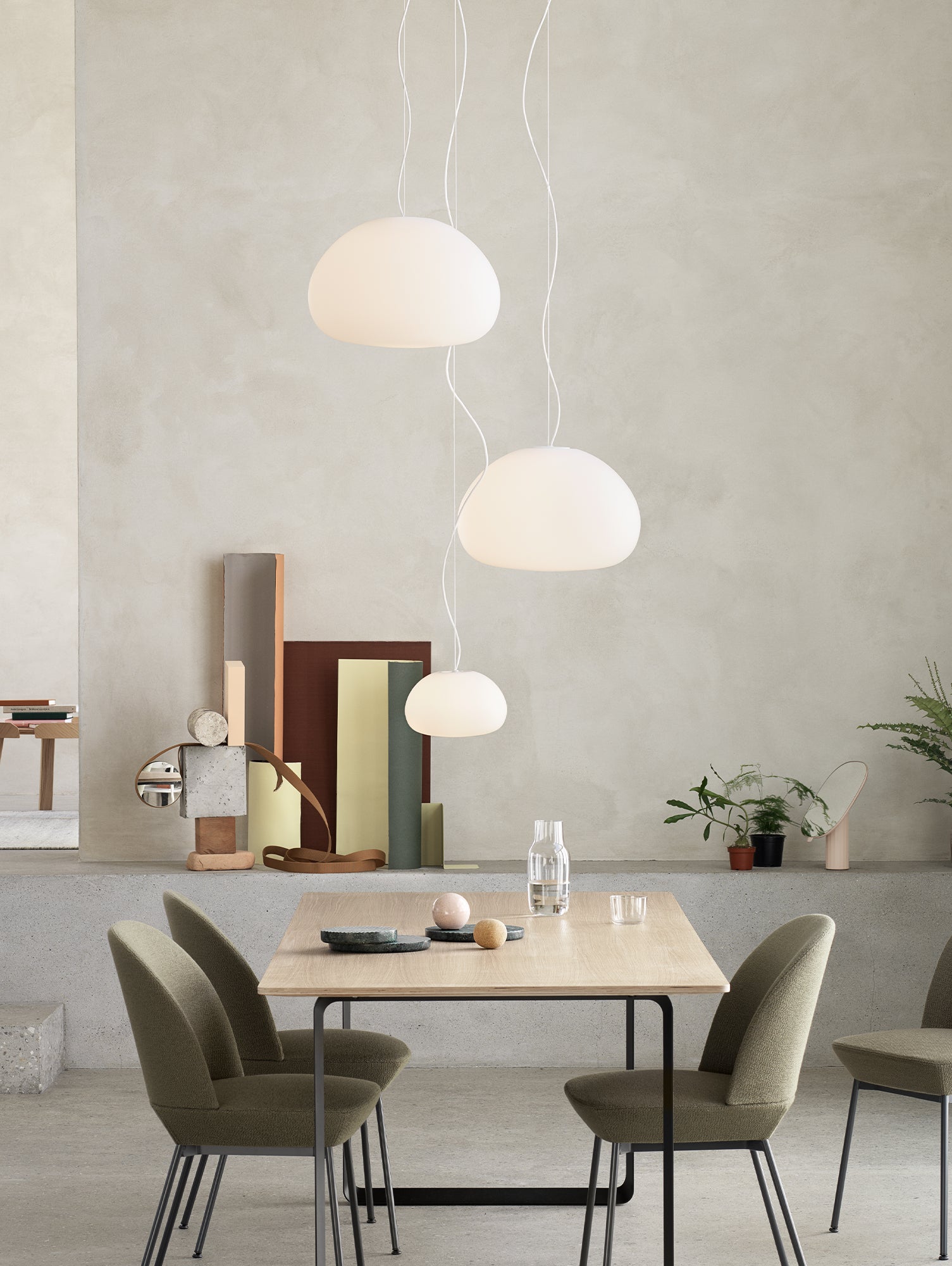 Claesson Koivisto Rune on the design: "We wanted to give the lamp a form with a certain softness, towards a more natural language and further removed from pure geometry. Fascinated by the way that surface tension governs the curvature of a resting water droplet, we have tried to capture its essence.The subtle irregularity of Fluid means that their silhouette gently changes depending upon the viewing angle. It also brings a greater light intensity to the lamps’ underside – just where you need it."
