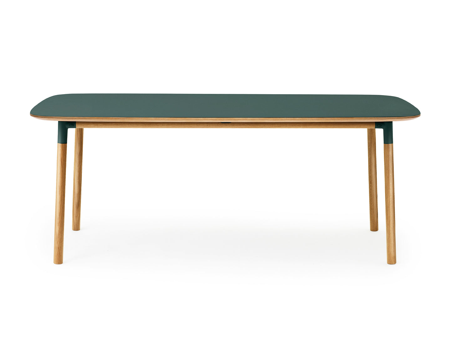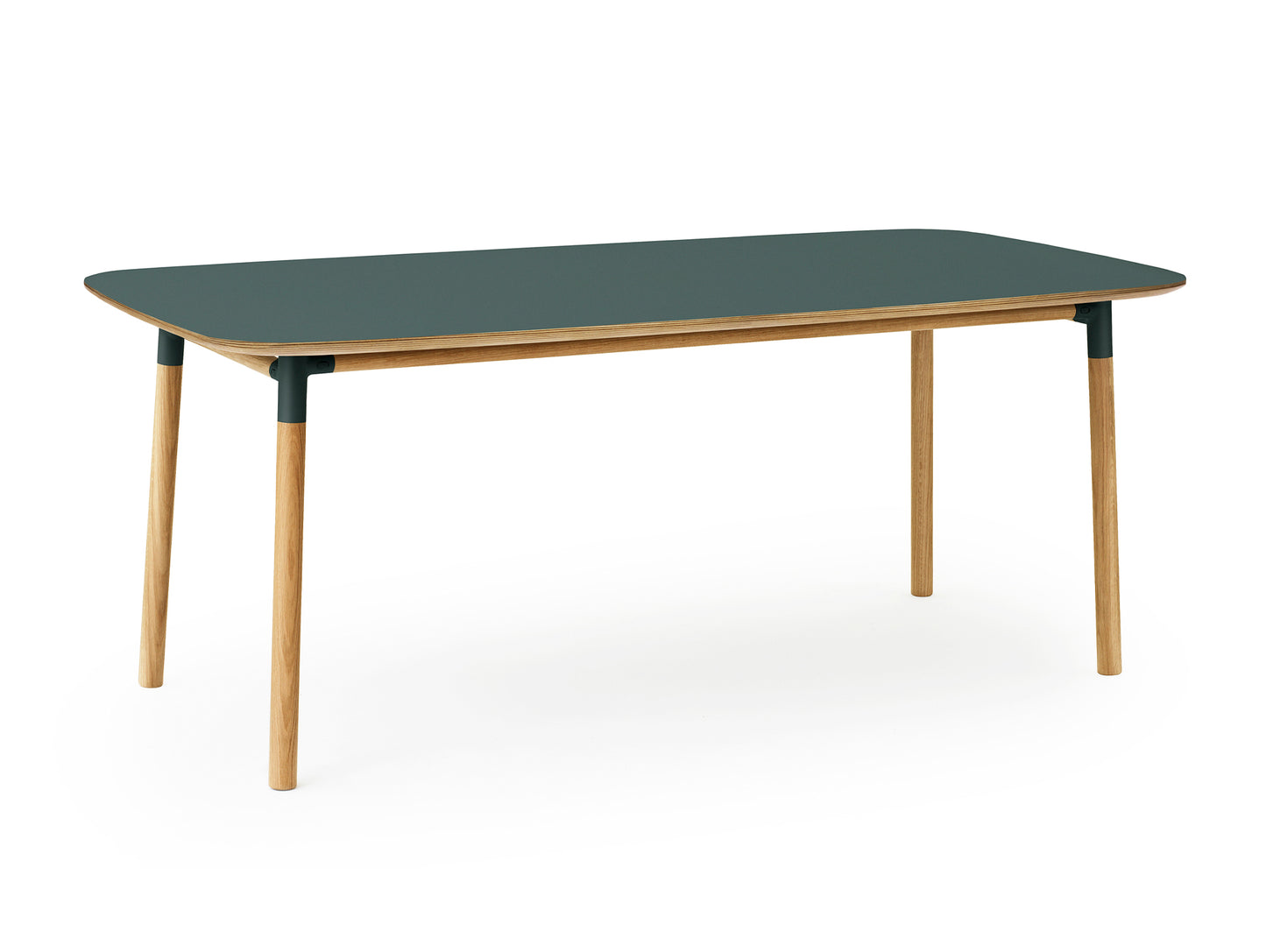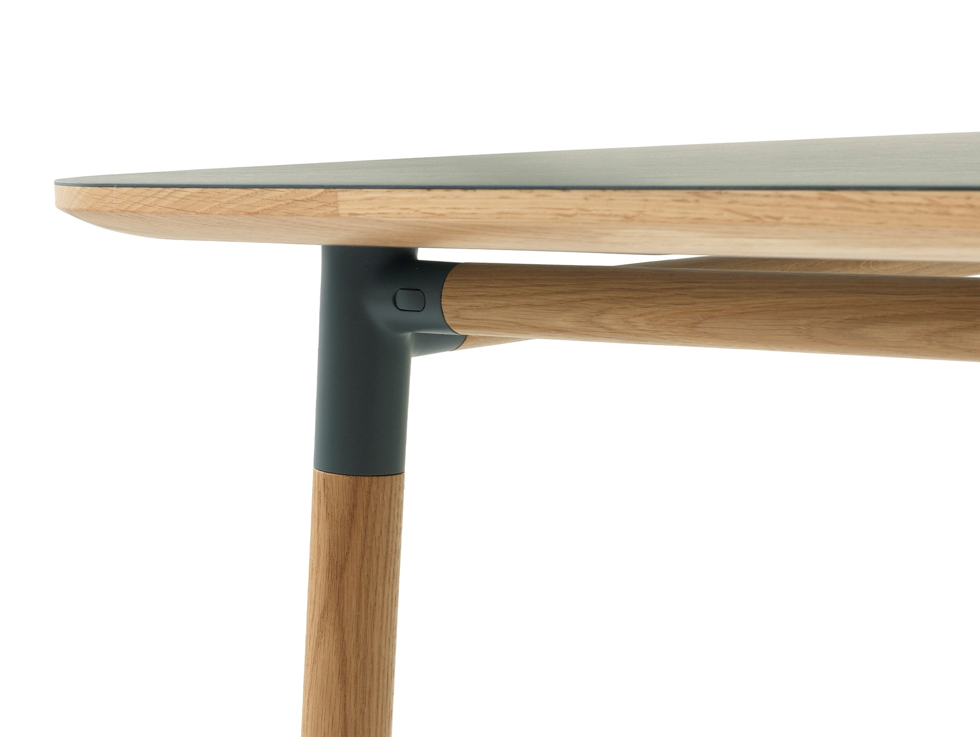 The rounded oak legs are securely attached to the tabletop using the same innovative cup system design as in the Form Chairs, ensuring a sturdy and elegant connection. This design offers both durability and a seamless, modern look. The soft, rounded corners of the table add a gentle touch, making it both visually appealing and practical for everyday living.