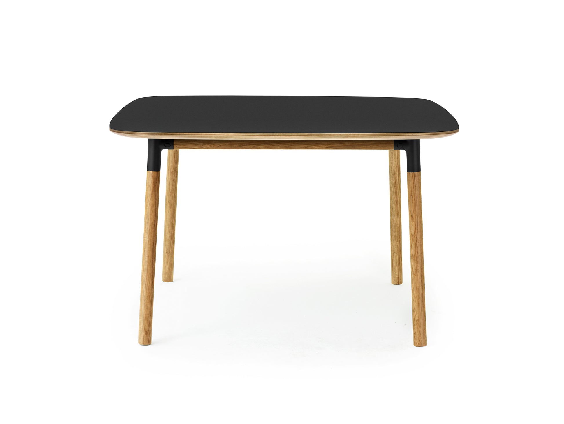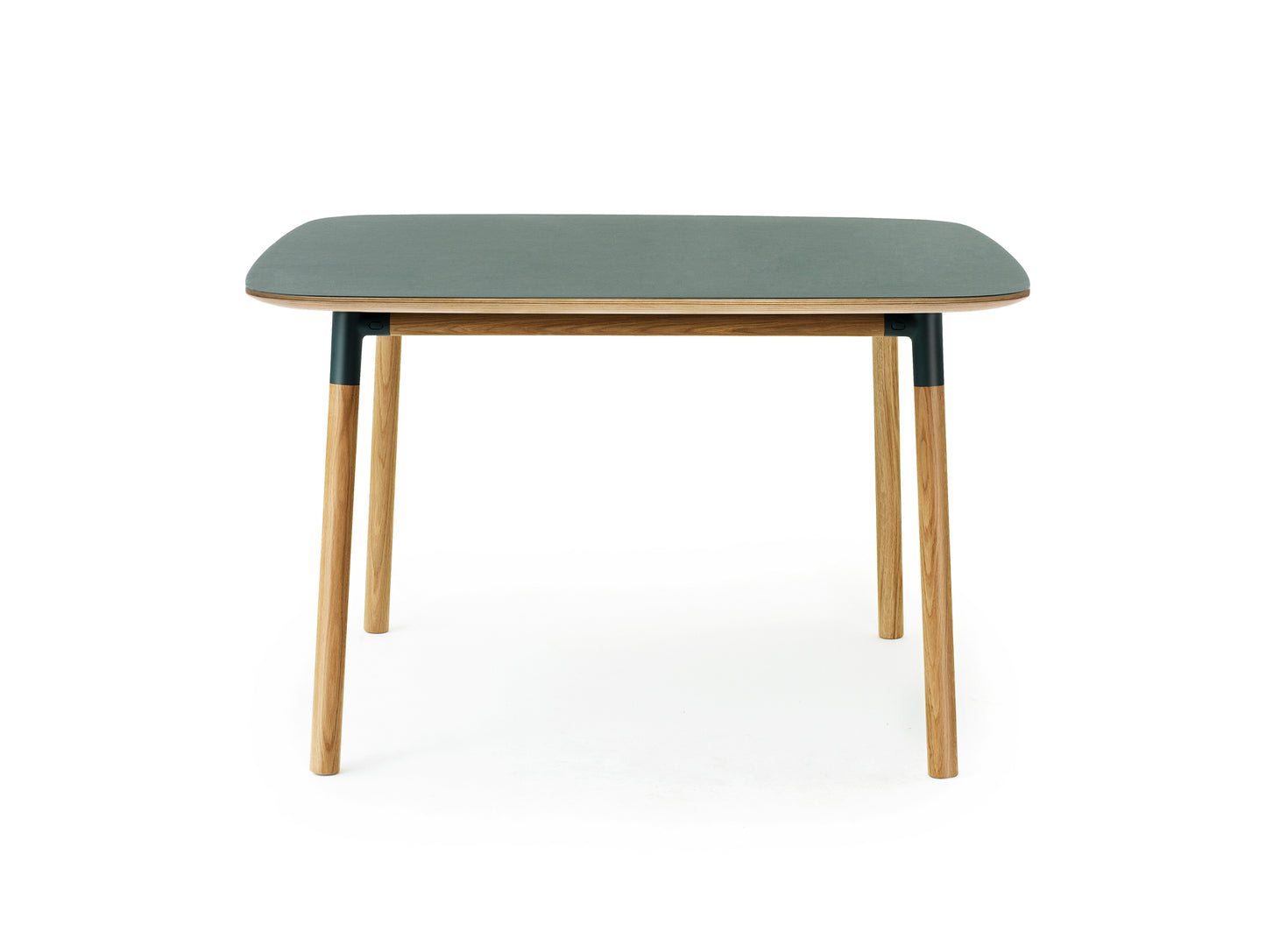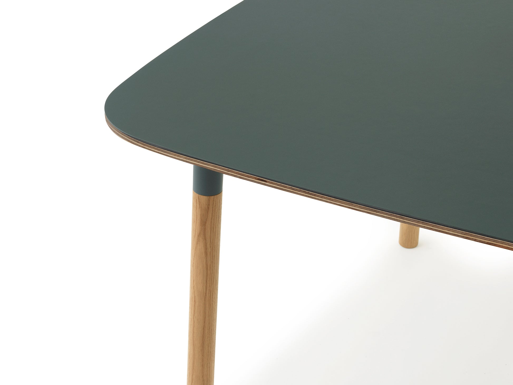 The rounded oak legs are securely attached to the tabletop using the same innovative cup system design as in the Form Chairs, ensuring a sturdy and elegant connection. This design offers both durability and a seamless, modern look. The soft, rounded corners of the table add a gentle touch, making it both visually appealing and practical for everyday living.