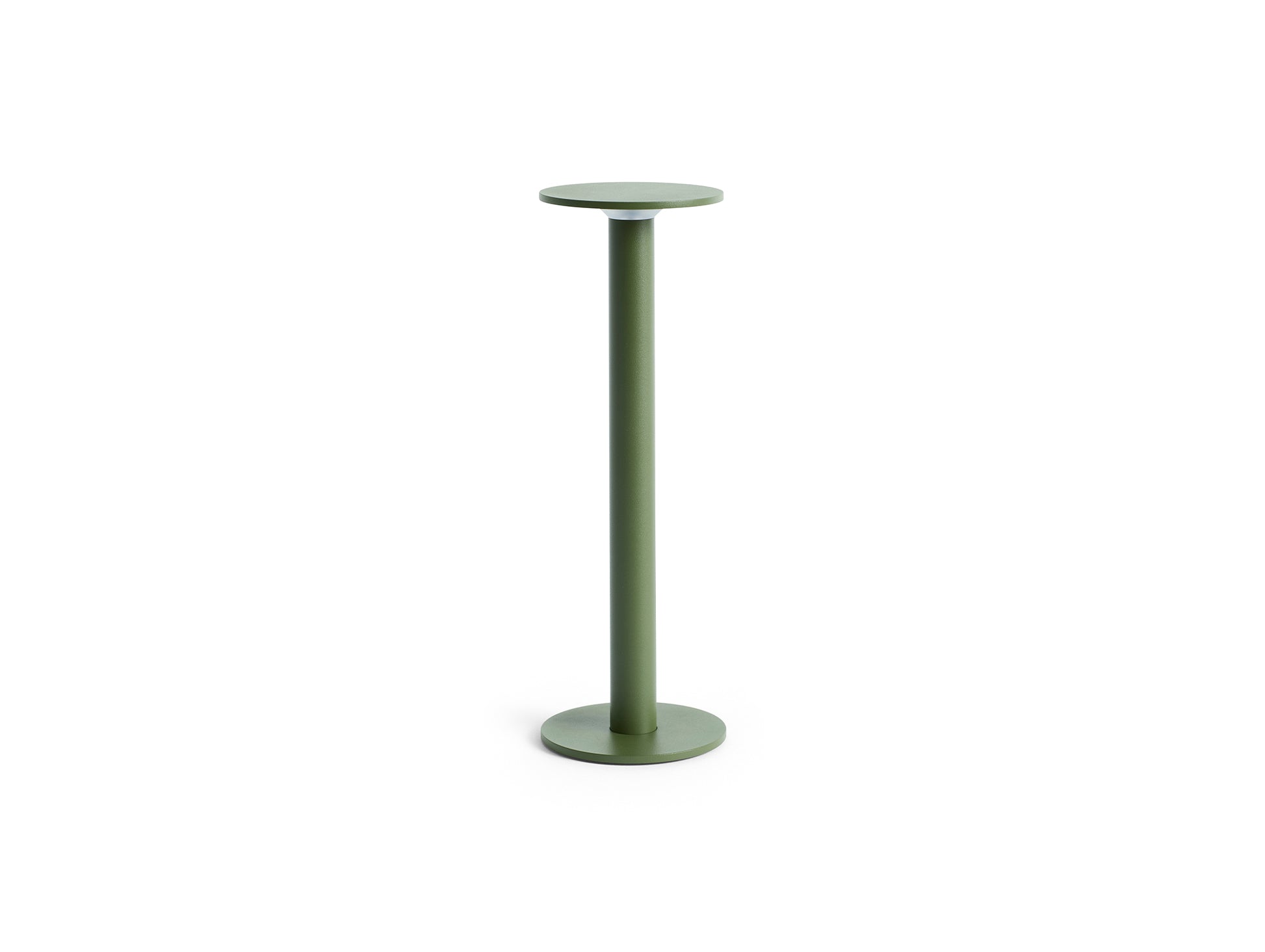 The Host Portable Lamp is a compact light that provides illumination without drawing attention to itself. Its slim profile takes up minimal space, and the downward cast of light gently illuminates the surface below. An integrated magnet in the base of the stem allows the lamp to attach directly to steel surfaces, including outdoor tables such as HAY's Palissade or Deville, creating a clean and uncluttered tabletop setting. A flat steel base is included for use on non-magnetic surfaces such as wood or ceramic.