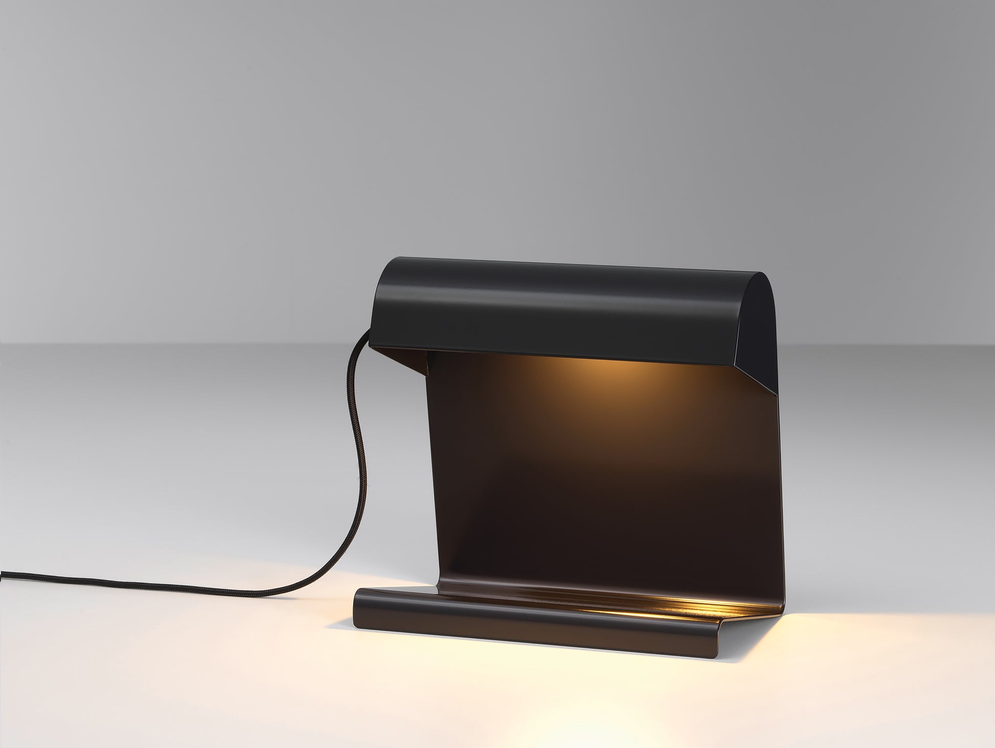 Jean Prouvé designed the Lampe de Bureau, a small table lamp, as part of the functional furnishings for the halls of residence at the Cité Universitaire in Nancy. Constructed from bent sheet steel, it reflects the light rays and pleasantly illuminates the desk surface. The glare free design makes the lamp a perfect reading companion and is ideal for desks, shared table spaces or perhaps a kitchen counter top.