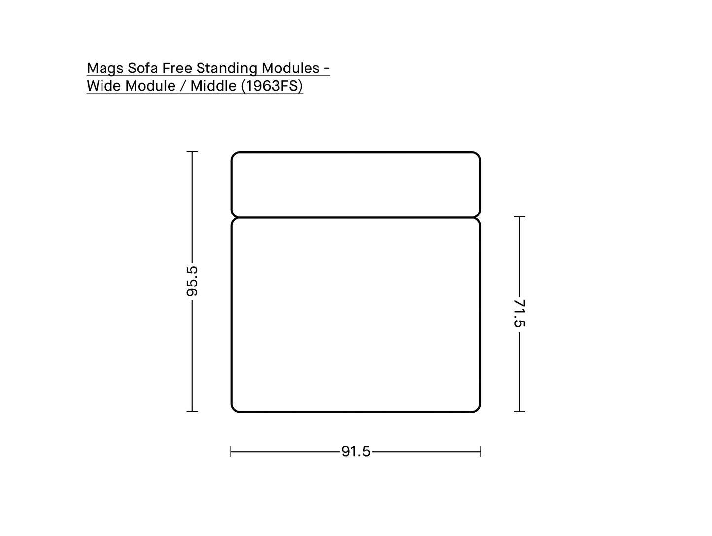 HAY's Mags Sofa series is available in a myriad of fabric and module options. This page is dedicated to Mags Sofa Free Standing Modules. 'Free Standing' means that the sofa module will not have any joining brackets and sofa edges will be 'plumped up' with foam; making the item more aesthetically pleasing as an individual seat. However, this doesn't prevent you from butting up multiple modules to form a larger sofa whenever required - they just cannot get close enough to join.