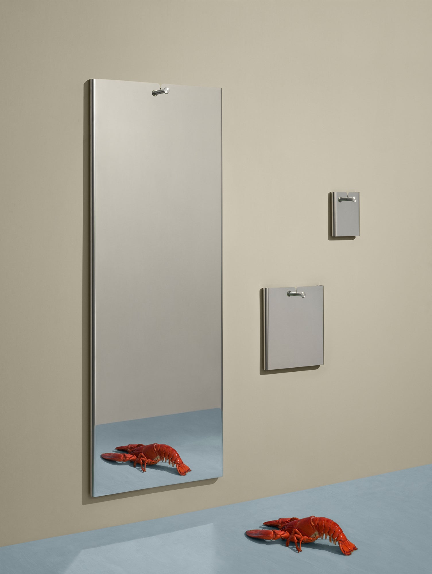 The Memory Mirror is meticulously crafted from polished stainless steel, featuring a distinctive curved shape with reflective sides and a practical hanging knob. Its 3cm thickness adds a touch of sophistication by creating an elegant gap between the mirror and the wall. Designed with both style and function in mind, this mirror includes a convenient knob that can be used to hang scarves. Manufactured with precision in Italy, each mirror is diamond polished to attain the highest level of reflectivity. With its aesthetically pleasing design, the Memory Mirror is the perfect addition to your daily routine, bringing an elevated touch to your everyday activities.