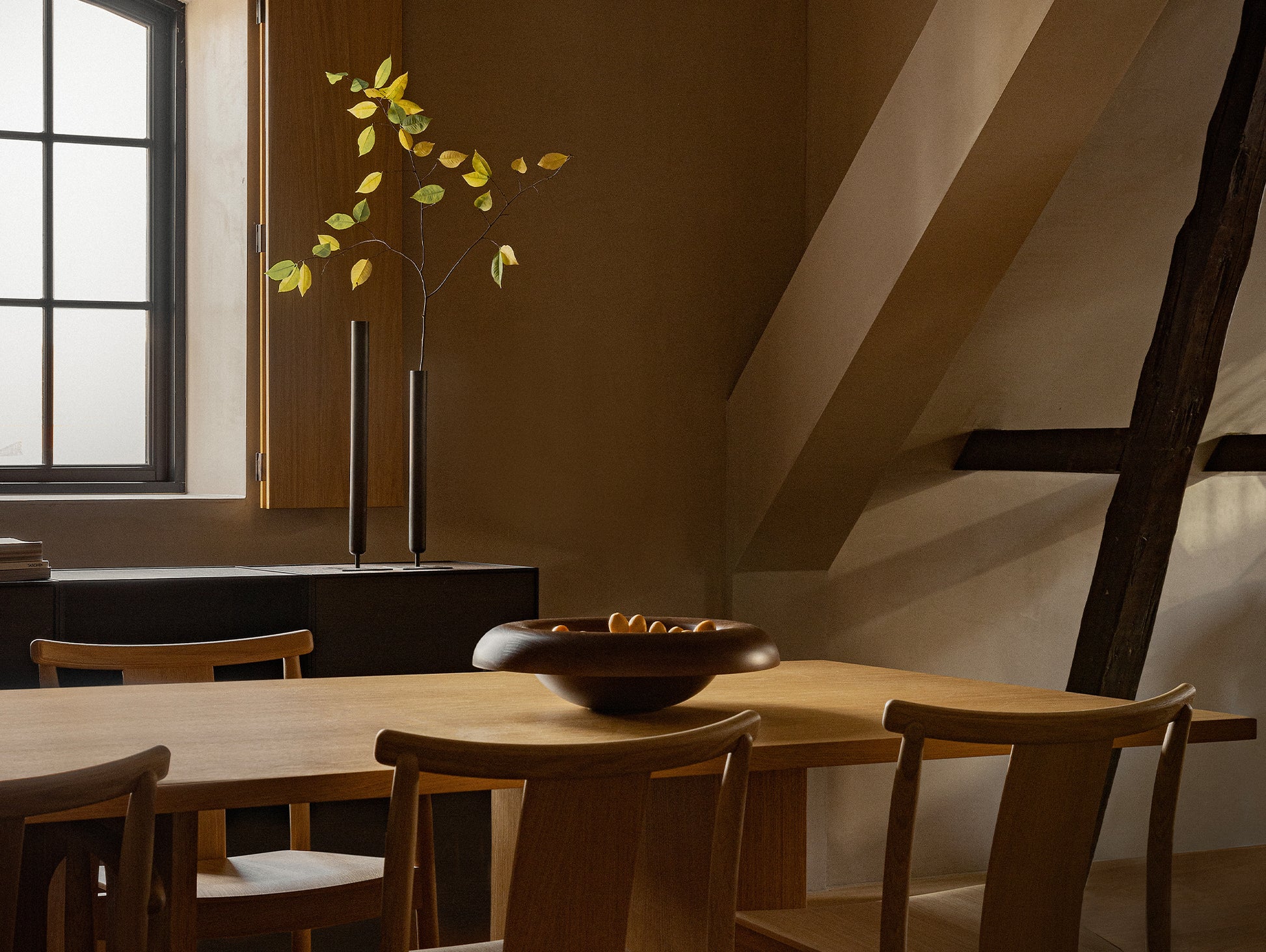 Designed by Oslo-based design studio Skogstad & Wærnes, Audo Copenhagen's Merkur Dining Chair was originally designed for one of Norway's most monumental buildings, the Oslo Stock Exchange. Inspired by the historical context and the stock exchange's significance, the intention was to create sturdy yet elegant pieces of furniture that fit into the space.