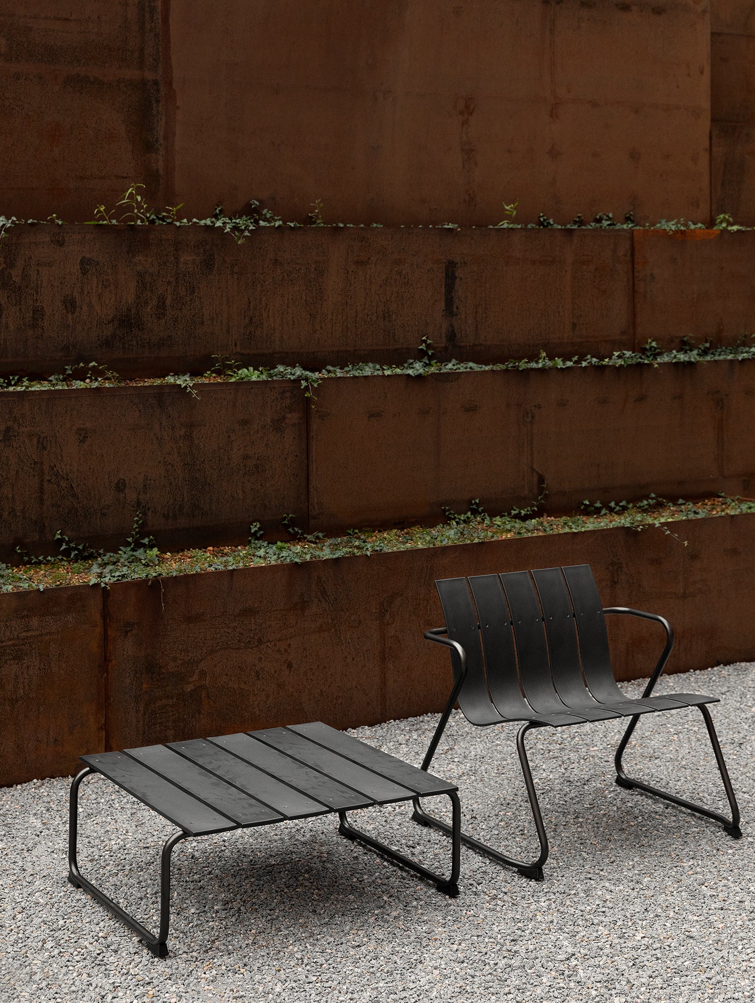 Characterised by its lightweight form with repeated slats and metal frames, the Ocean Lounge Table is durable and stable for both indoor and outdoor use. Made with recycled materials, each table is a unique and valuable piece of furniture. The Ocean Collection is designed for disassembly, meaning that the design allows each component in its purest form to be recycled into new production circles when it comes to the end of its useful life. The collection is suited to a wide variety of environments, from cafes and restaurants to gardens, terraces and balconies.
