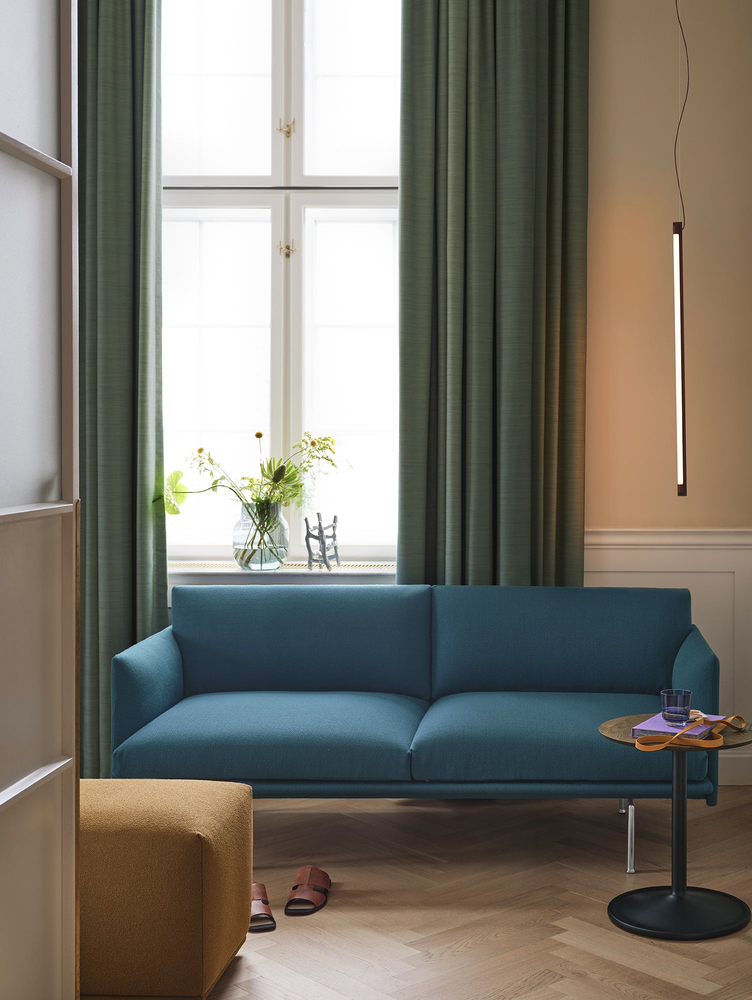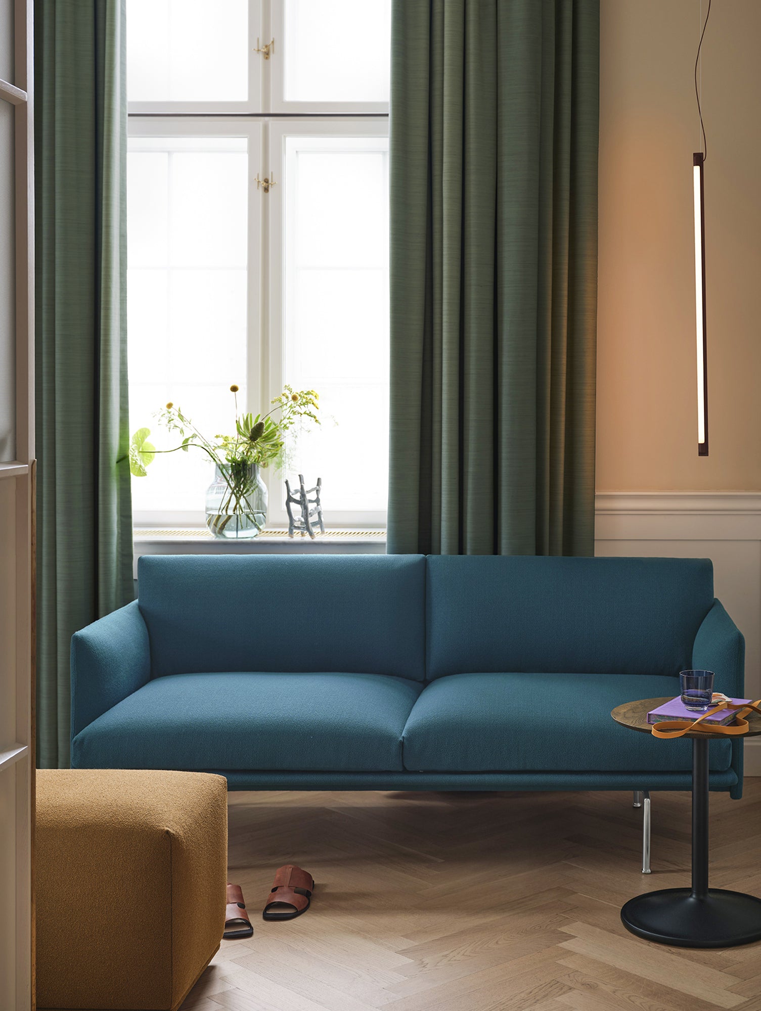 The Outline Studio Sofa from Muuto is a scaled-down version of the original Outline Sofa and tailored for small city dwellings. It references the sophisticated clean lines of Mid-Century furniture but brings the design up to date with generous modern dimensions and high comfort. With slim armrests and a slender back, the space for sitting is maximised, seating two people comfortably.
