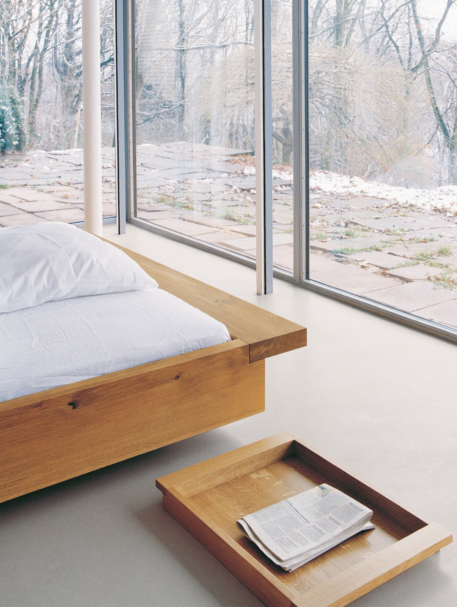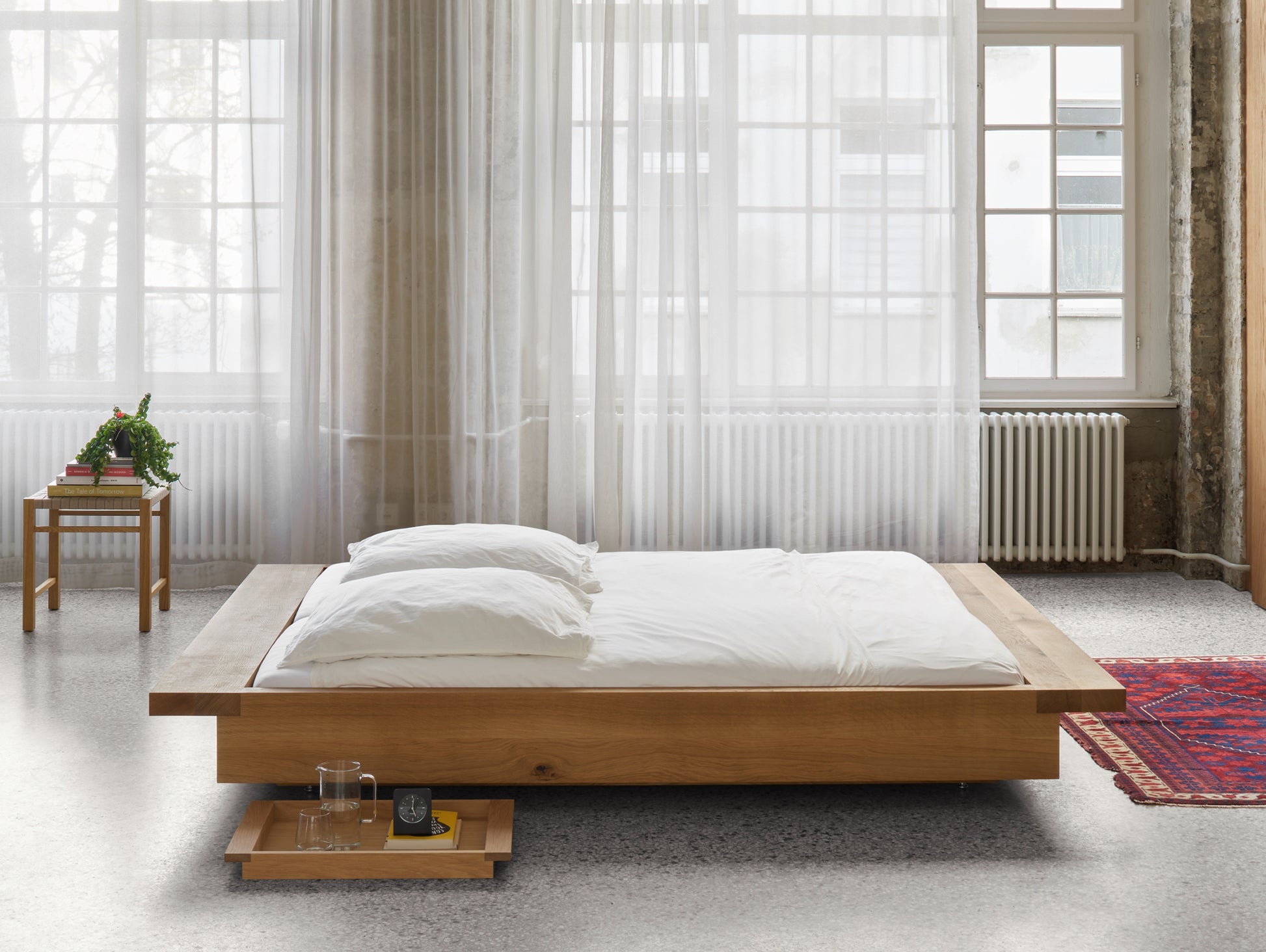 Designed by Belgian architect Philippe Allaeys, e15 produces an elegant and minimalist bed frame using exceptional quality solid European oak. The Noah Beds architectural form is especially compelling due to the extended frame on both sides that can also act as a shelf. The ethereal floating character of Noah Bed stands in complete contrast to the very solid construction.