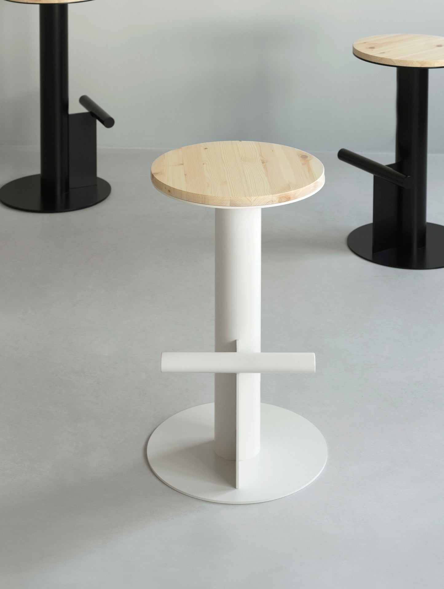 Designed with a focus on simplicity and quality, the Pole Bar Stool stands out with its minimalist yet distinctive expression. The design is inspired by brutalist architecture, characterised by its robust materials and geometric shapes, which form the foundation of the Pole's silhouette.