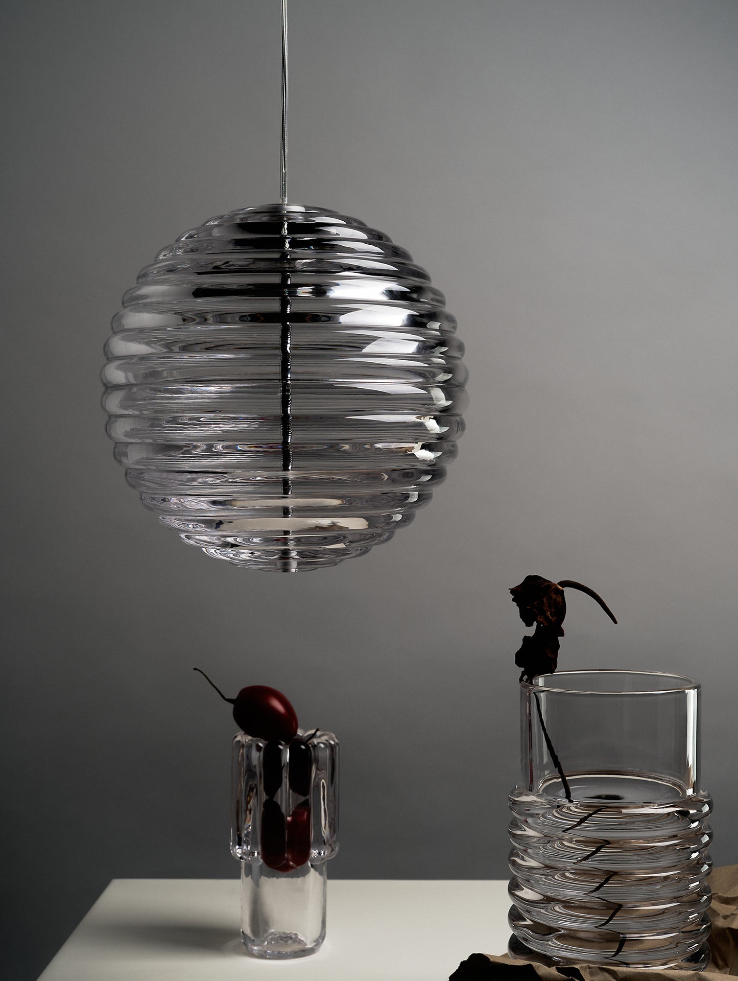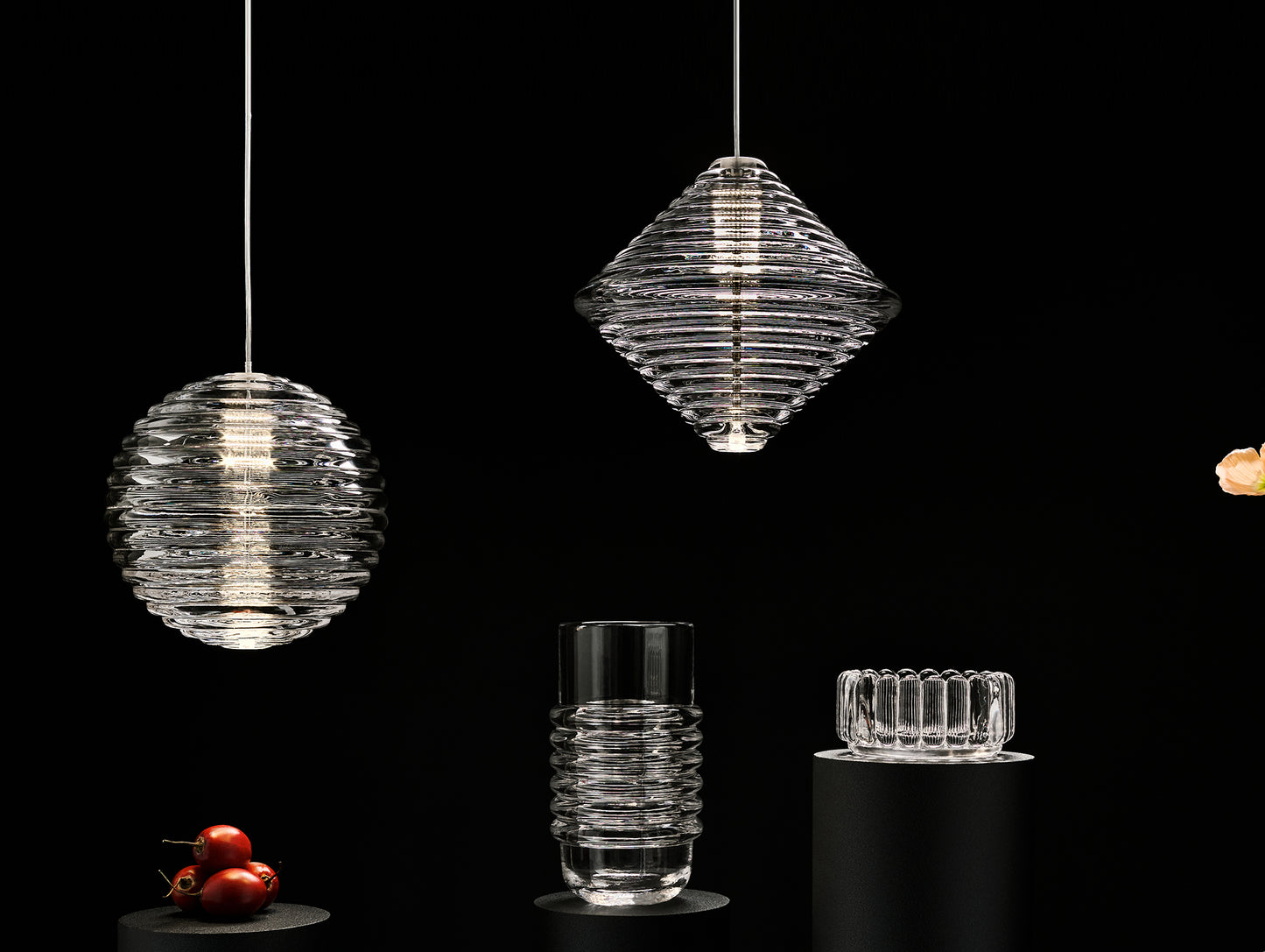 The ribbed glass adeptly diffuses the light source, casting mesmerising linear patterns. Bold in silhouette and effortless in function, the Press series stands out for its design and durability.
