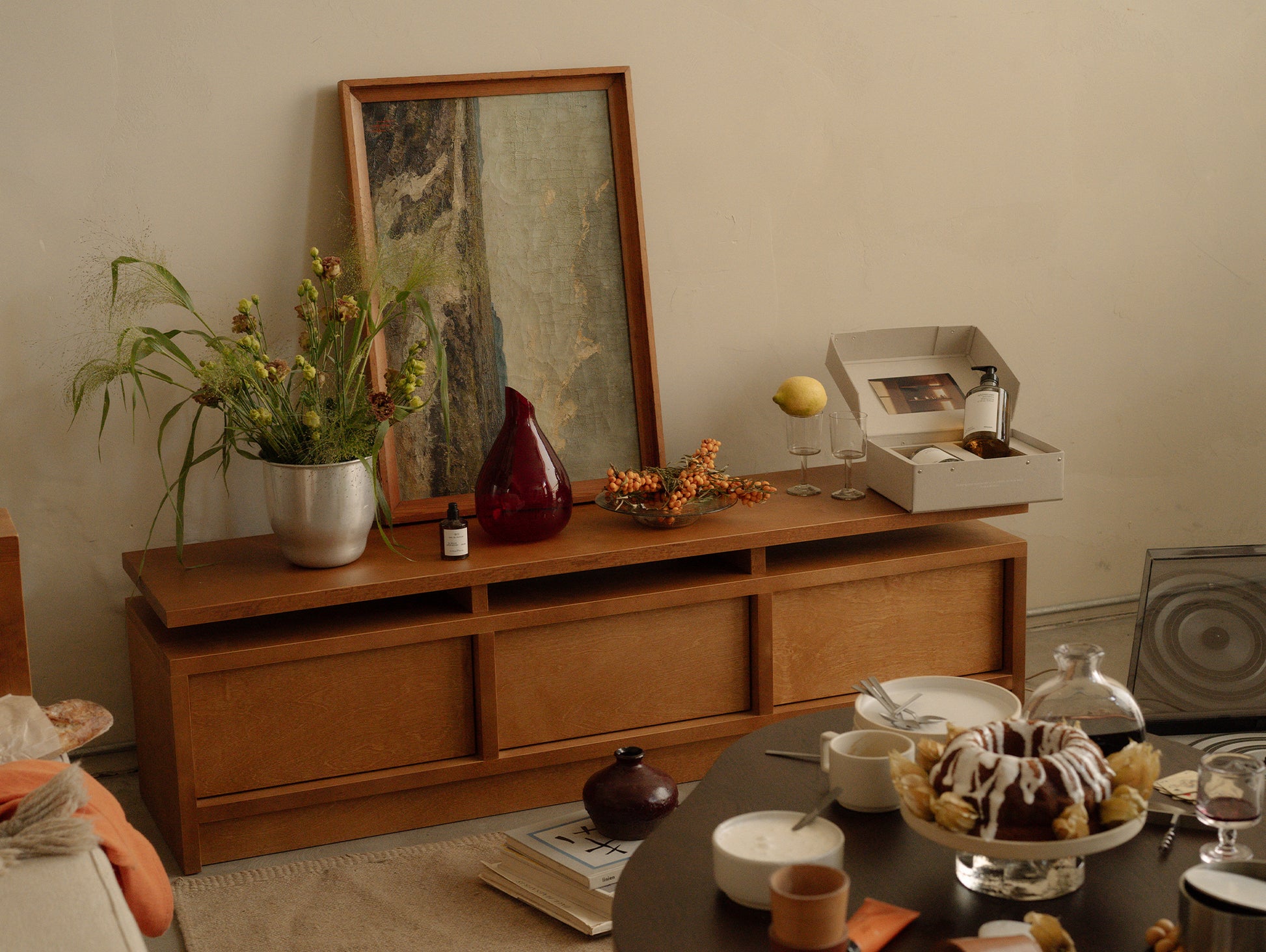 Thanks to its minimal yet elegant design, the console can be placed against the wall or positioned in the centre of the room as a space divider.