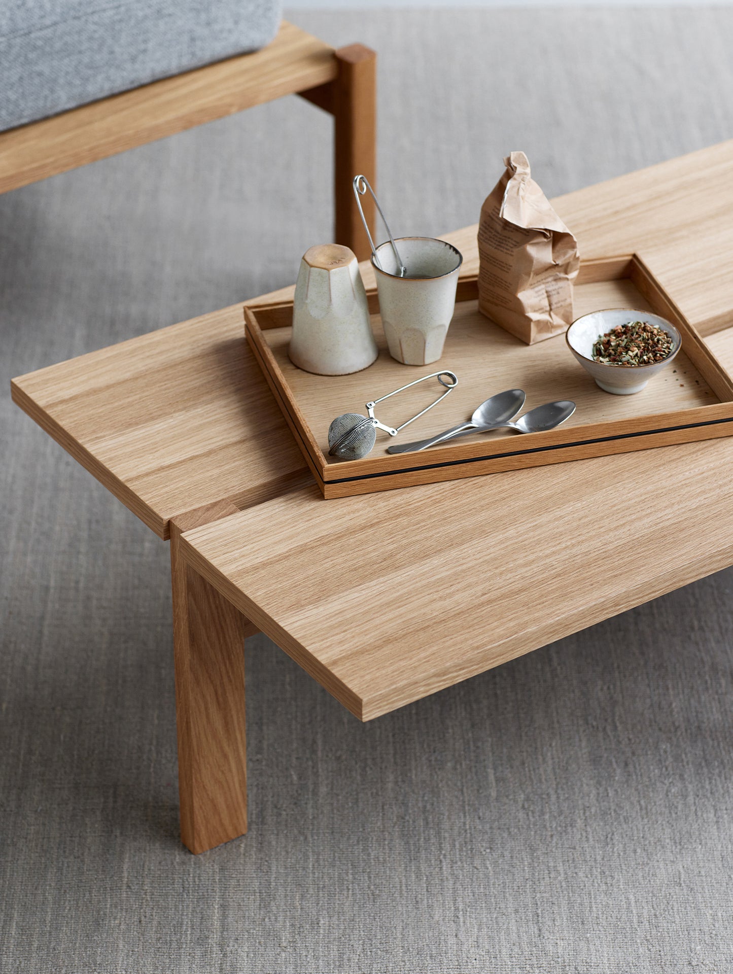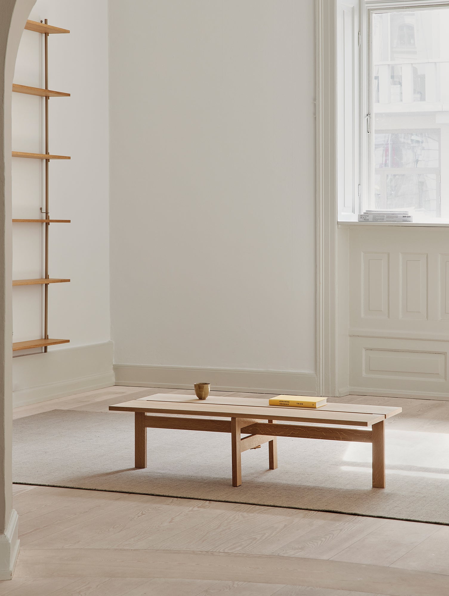 Designed by the Danish design studio Moebe, the Rectangular Coffee Table is part of their flat-packed wooden table series. Made with an FSC-certified oak veneer tabletop and solid oak base, the table adds a clean Japanese aesthetic to any space while embracing clever Scandinavian construction techniques.