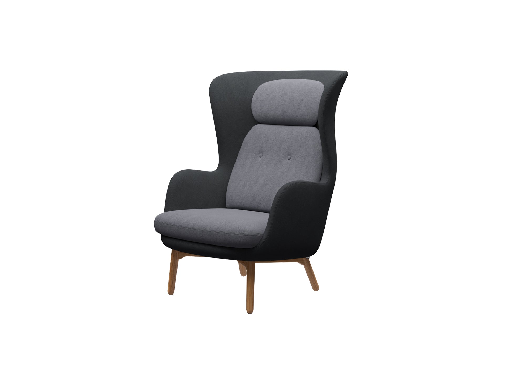 The design of the shell is elegant and simple, pleasing to both the eye and the body, and promises tranquillity in both its visual appearance and comfortable functionality. Furthermore, the form of the shell allows you to choose between engaging in the room's activities or relaxing in your own private space. The Ro Lounge Chair is available in two different types of upholstery - single or mixed, for the shell and seat - and comes in two base options: brushed aluminium and clear lacquered oak.