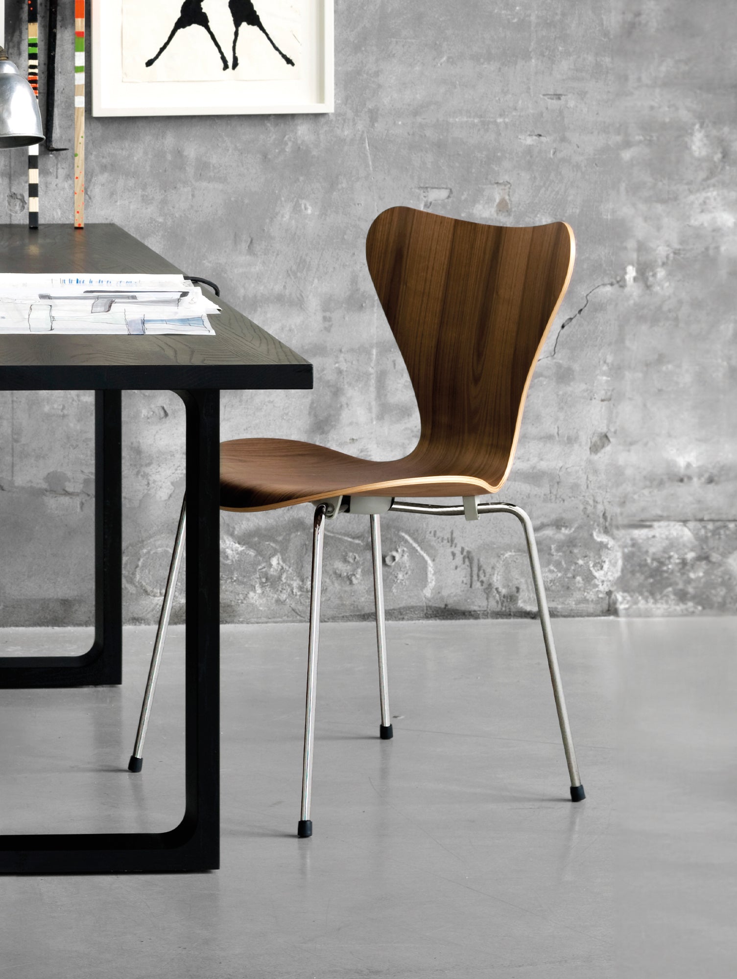 The Series 7 Dining Chair is available with coloured-ash and colour-lacquered wood. It also comes in a front-upholstered and fully-upholstered version.