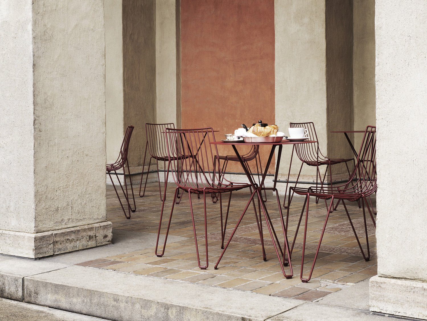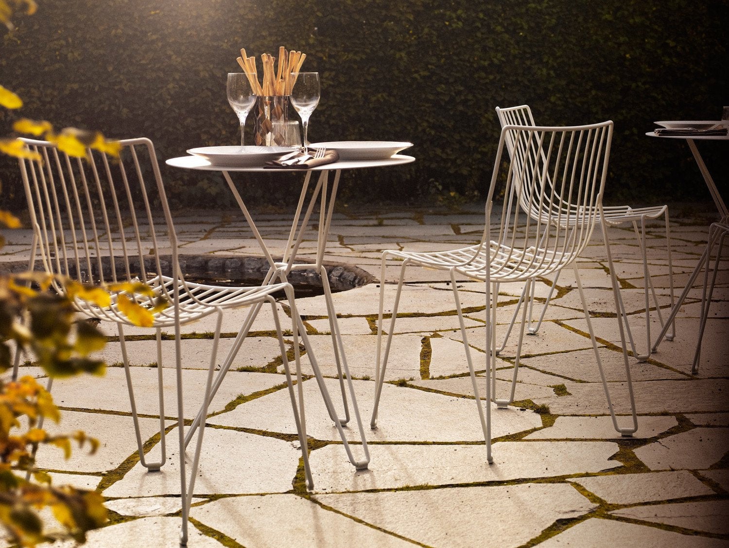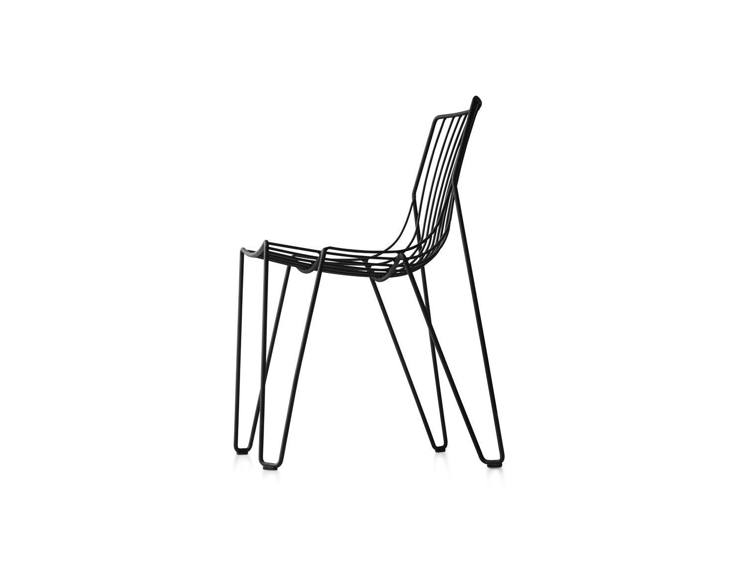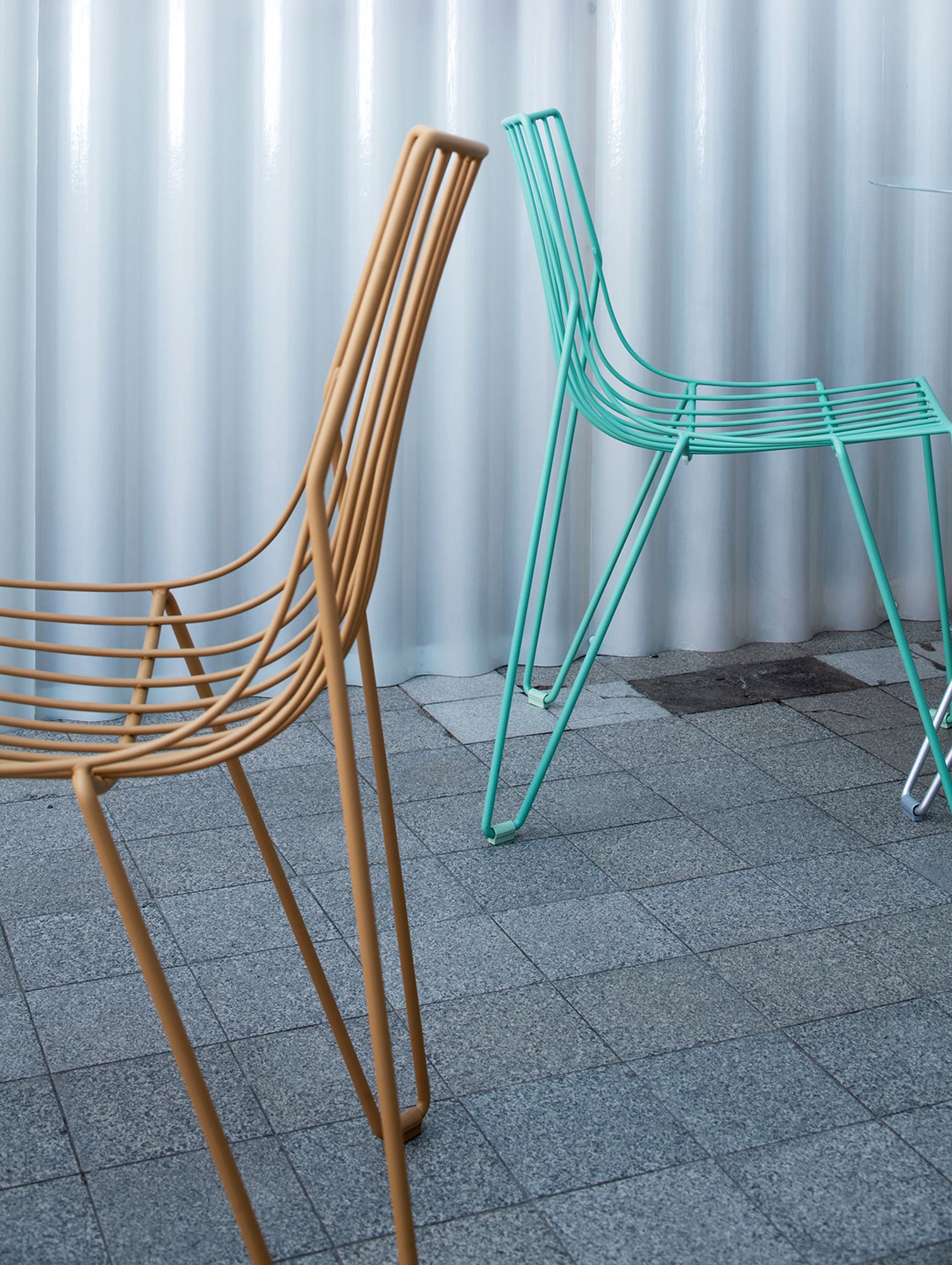 The Massproductions Tio chair is an elegant, stackable chair made solely from steel wire. Due to its transparency and clarity of design, The Tio Chair blends in well with a large variety of architectural styles. A purposeful thick wire construction makes it impossible for water to settle on the surface, the ideal design for the great British weather.