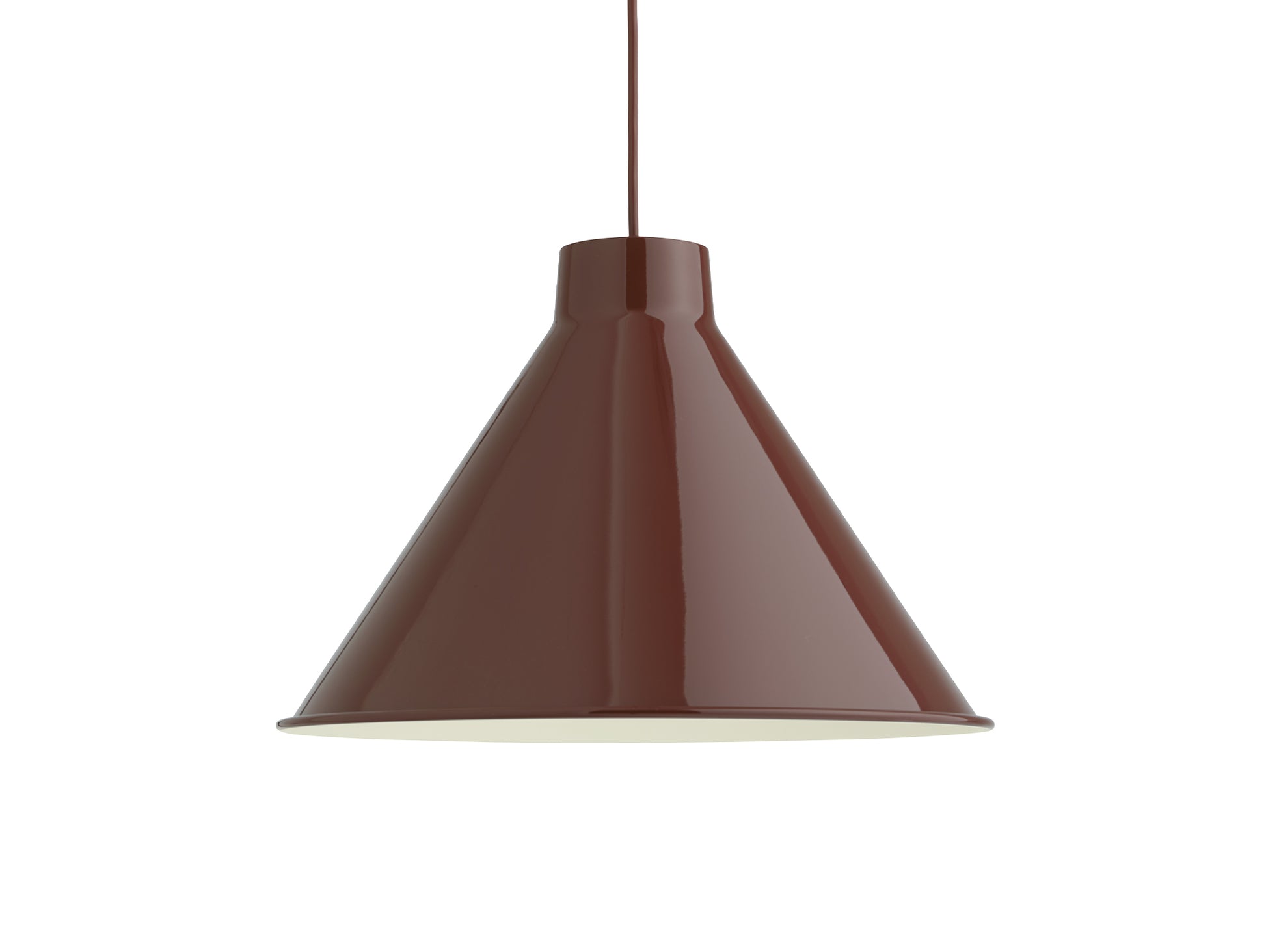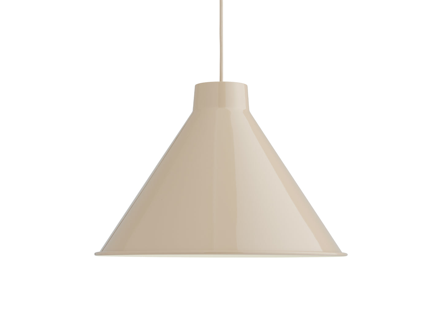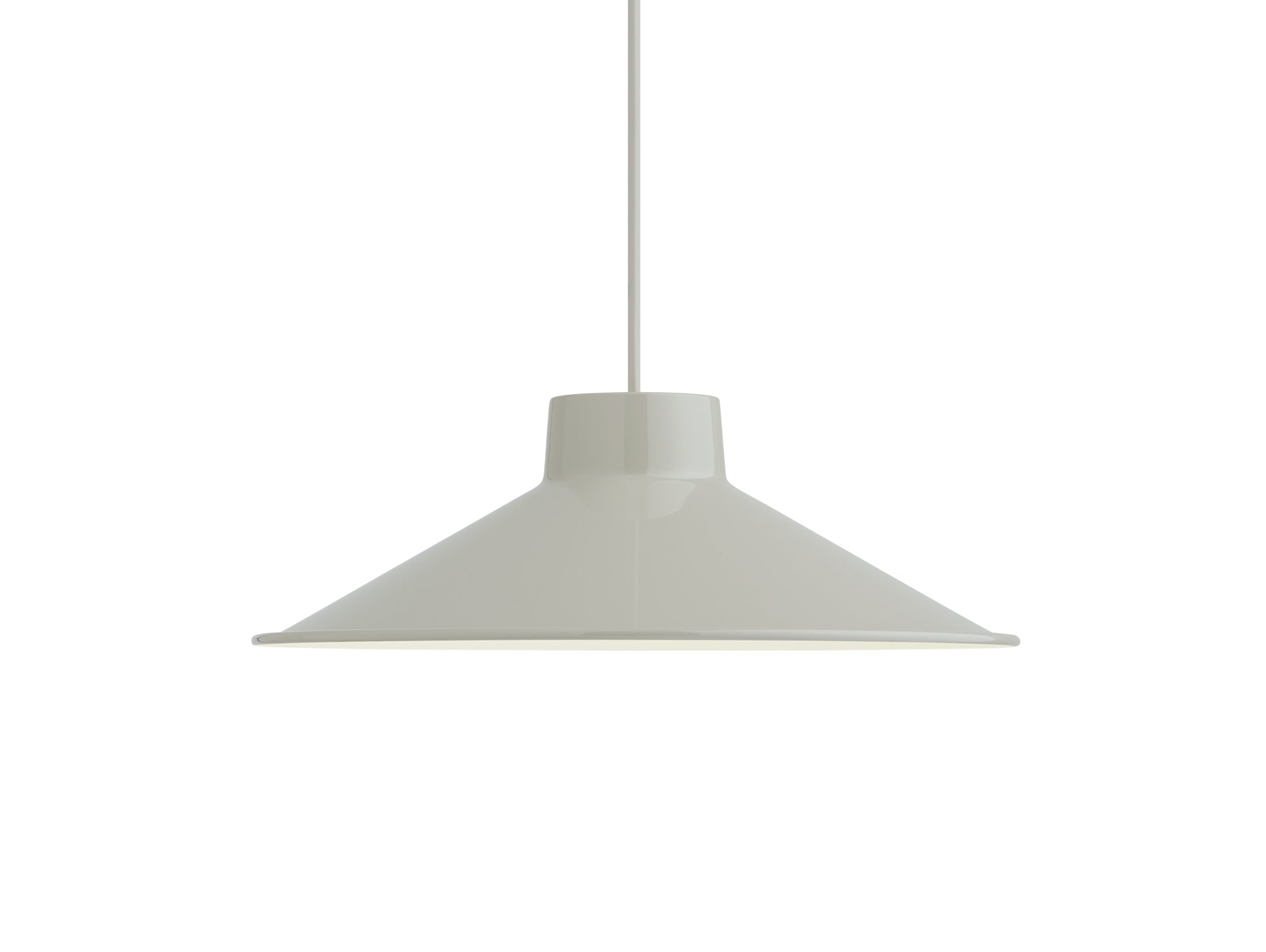 Constructed from spun steel with a graphic rolled hem, the Top Pendant Lamp family is a versatile series that offers endless opportunities and combinations across colour and size that you can use to personalise your space. It offers a uniquely glare-free light enabled by the proportions and angle of the shade as well as the positioning of the light source. The Top Pendant Lamp can seamlessly fit in or make a strong impression - be it in the warm atmosphere of the bedroom, kitchen, living room or gently suspended above a dining table. Its glossy, powder-painted finish accentuates its characteristic silhouette, truly making it pop.