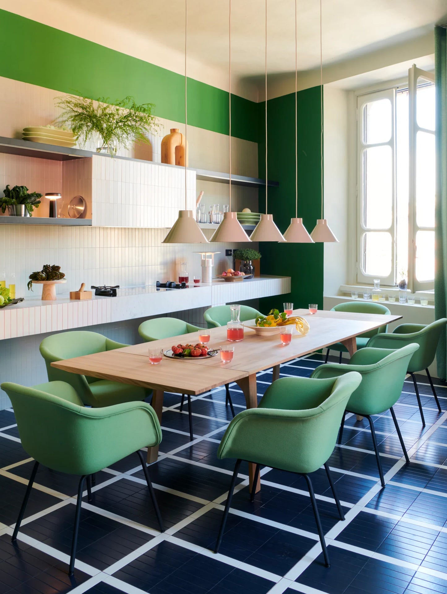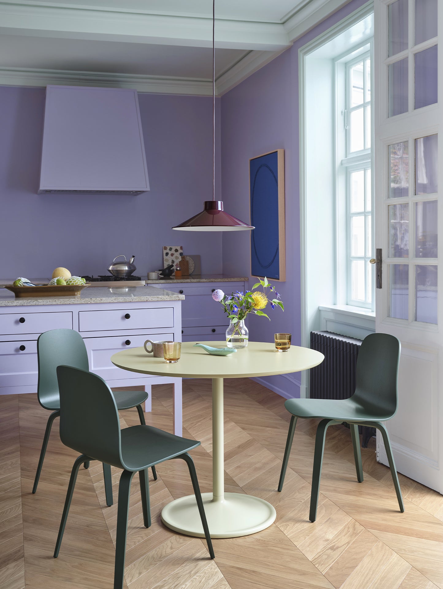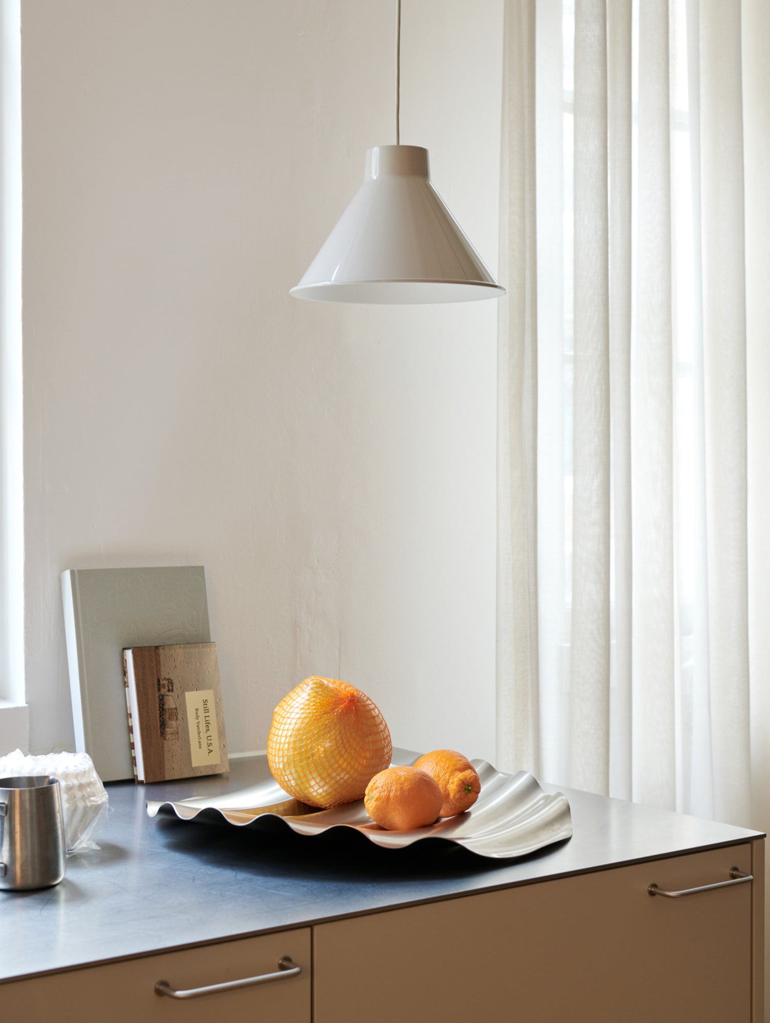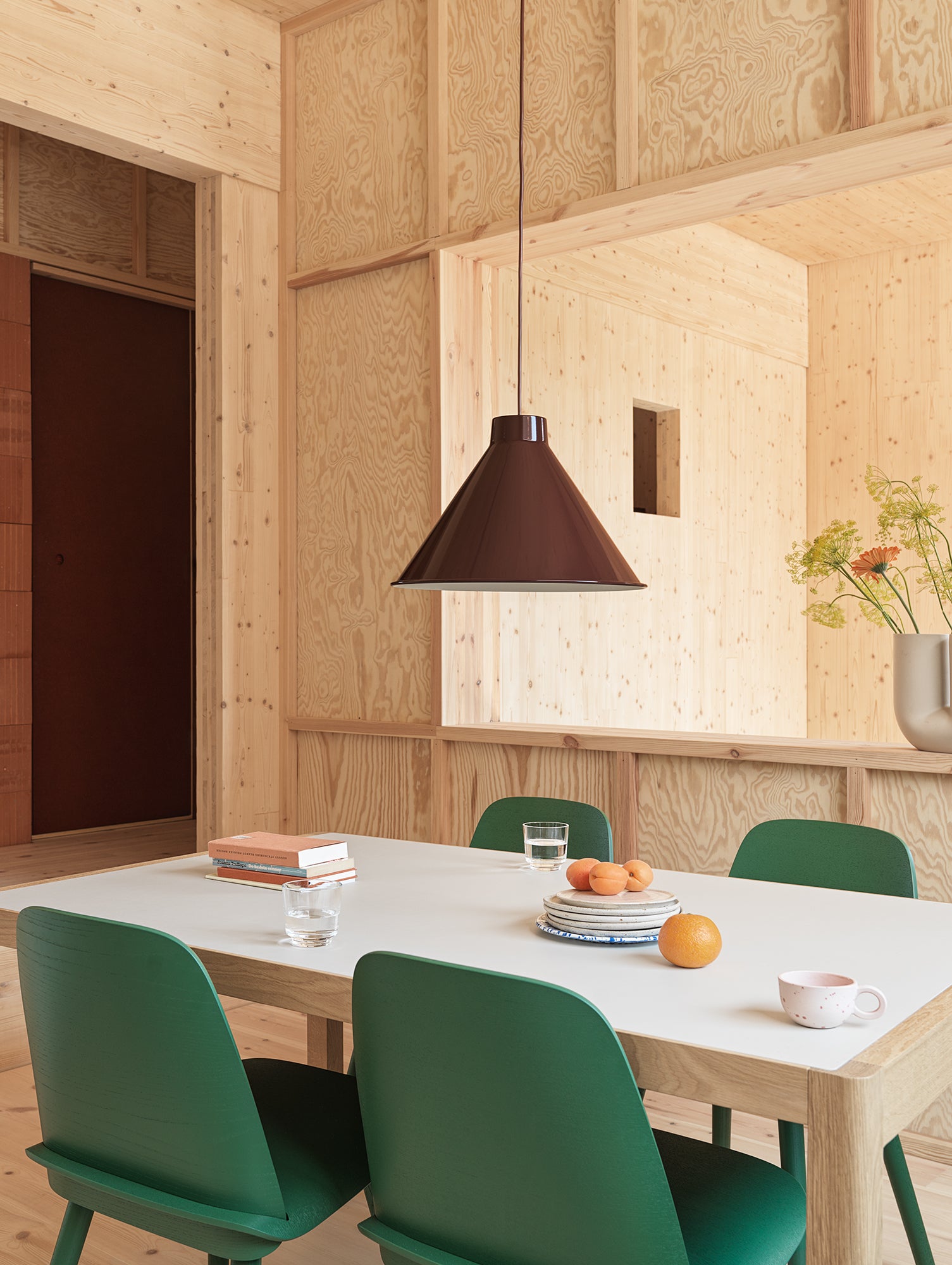 Constructed from spun steel with a graphic rolled hem, the Top Pendant Lamp family is a versatile series that offers endless opportunities and combinations across colour and size that you can use to personalise your space. It offers a uniquely glare-free light enabled by the proportions and angle of the shade as well as the positioning of the light source. The Top Pendant Lamp can seamlessly fit in or make a strong impression - be it in the warm atmosphere of the bedroom, kitchen, living room or gently suspended above a dining table. Its glossy, powder-painted finish accentuates its characteristic silhouette, truly making it pop.