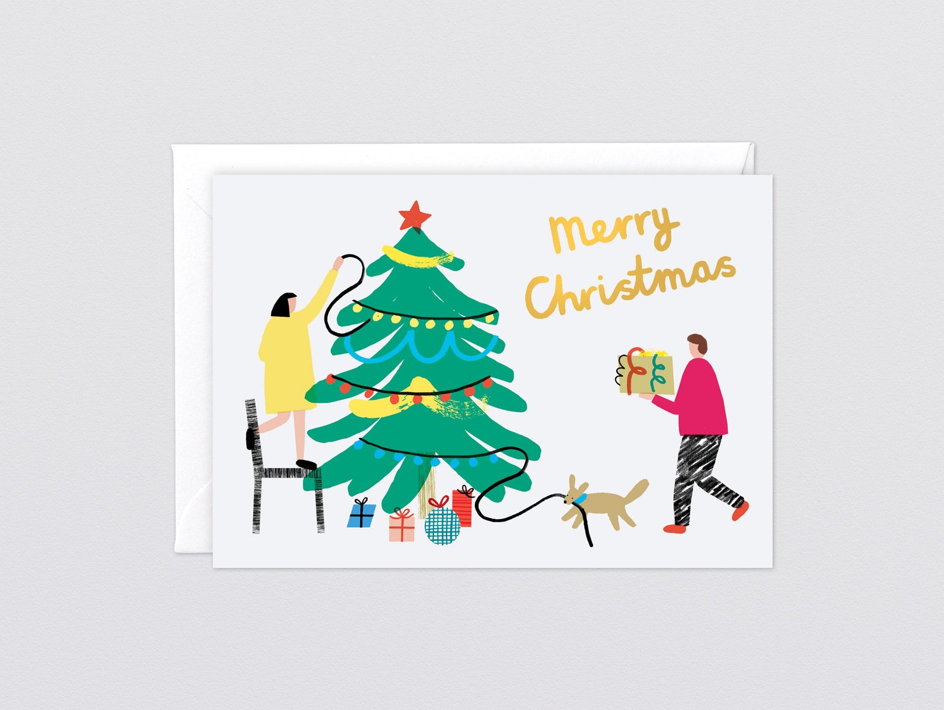 Celebrate the best part of Christmas with this 'Tree Decorating' card from Wrap. Send your nearest and dearest some contemporary Season's Greetings with this gold foiled card.