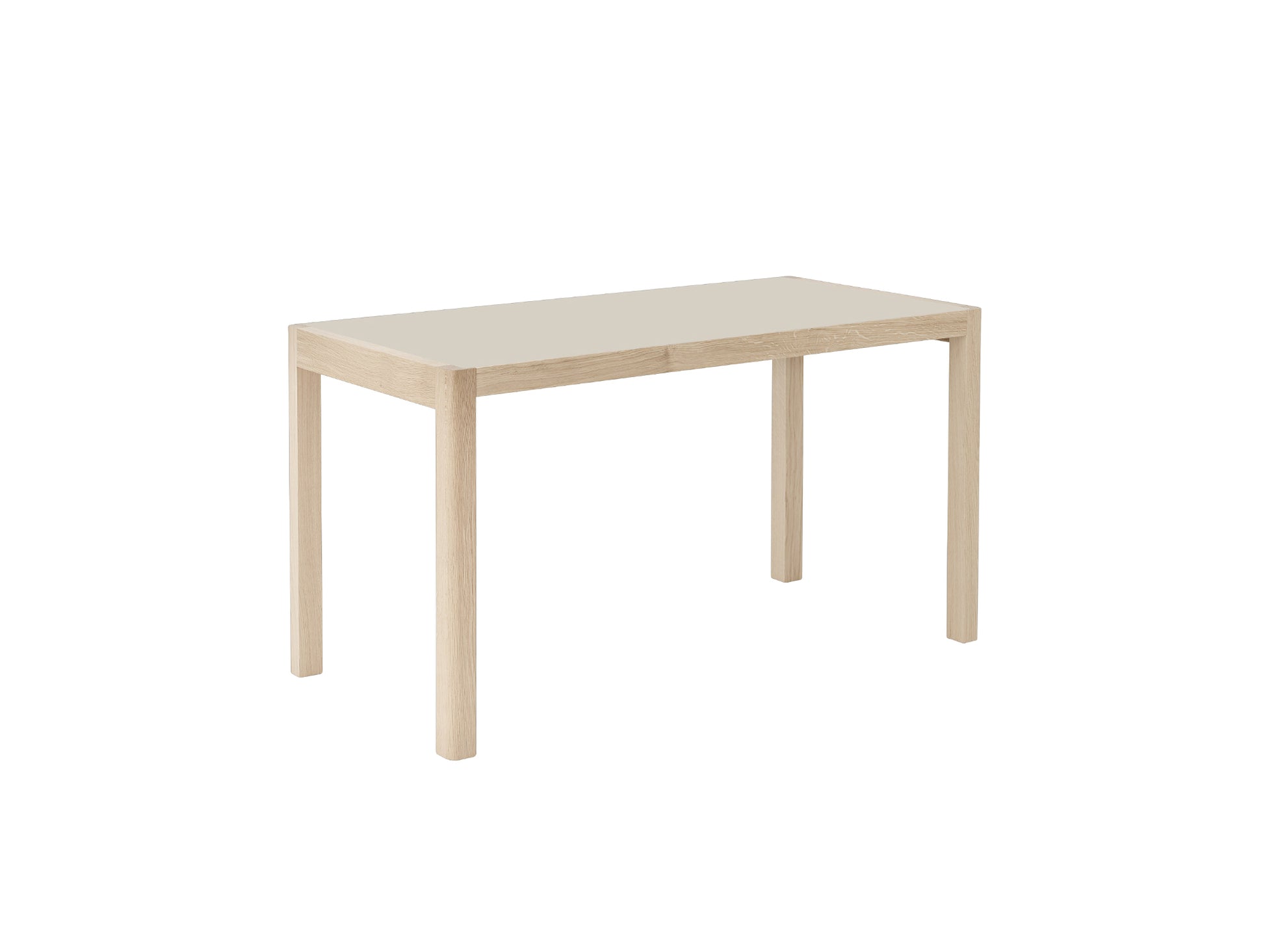 Crafted with a solid oak frame and a plywood table top finished with either a lacquered oak veneer or a linoleum top, the table will set the tone for the rest of your room. Thanks to the strong but minimal structure and three sizes, the Workshop Table is versatile and can be used as everything from a studio work desk to a dining table. We suggest pairing the Workshop Table with a Workshop Chair to complete the look.